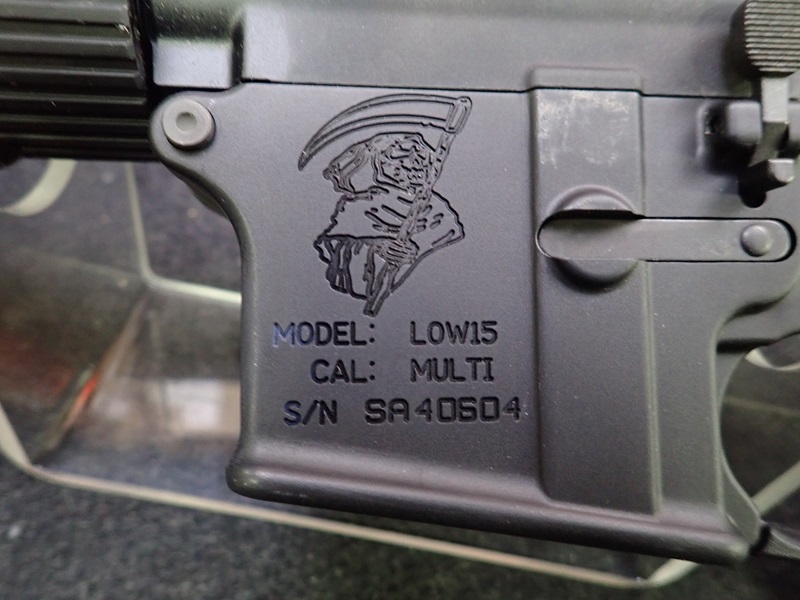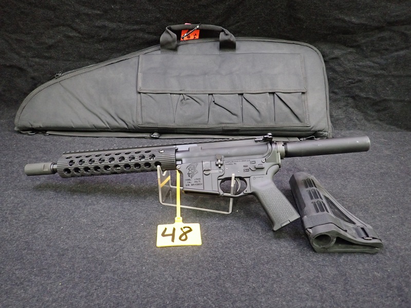 300 BLACKOUT SEMI-AUTOMATIC PISTOL, 10.5" BARREL, "REAPER" ENGRAVED W/SBM4 PISTOL BRACE & SOFT CASE (UNUSED, THIS FIREARM ALSO REQUIRES AN 11% FEDERAL EXCISE TAX)