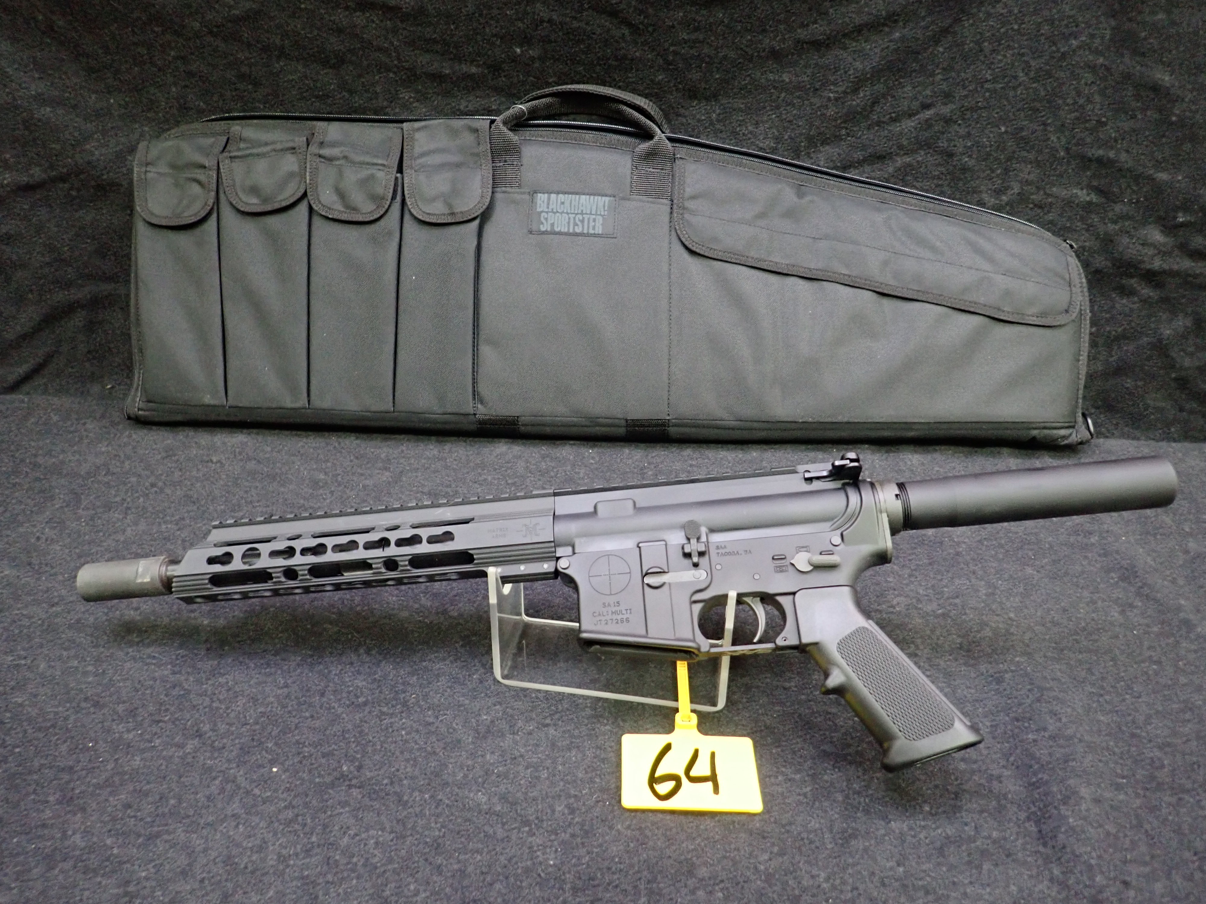 300 BLACKOUT SEMI-AUTOMATIC PISTOL, 10.5" BARREL, "RETICLE" ENGRAVED W/SOFT CASE (UNUSED, THIS FIREARM ALSO REQUIRES AN 11% FEDERAL EXCISE TAX)
