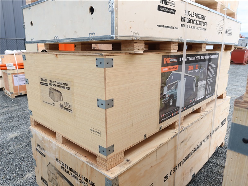 16' X 24' GARAGE METAL SHED W/ 12' SWING DOOR