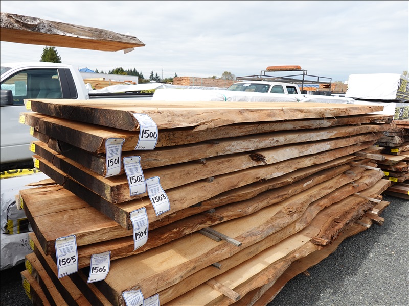 2-1/2" X 151" 5-YEAR AIR DRIED LIVE EDGE REDWOOD SLAB (LARGE END 54", SMALL END 48", NO REMOVAL BEFORE WEDNESDAY, OCTOBER 16TH)