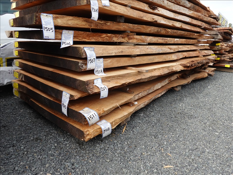 2-1/2" X 151" 5-YEAR AIR DRIED LIVE EDGE REDWOOD SLAB (LARGE END 54", SMALL END 38", NO REMOVAL BEFORE WEDNESDAY, OCTOBER 16TH)