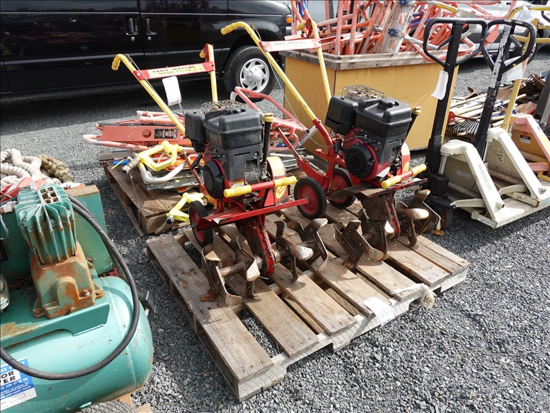 LOT, (2) YARD MARVEL RENTAL TILLER 20" FRONT TINE ROTOTILLERS (NEEDS REPAIR)