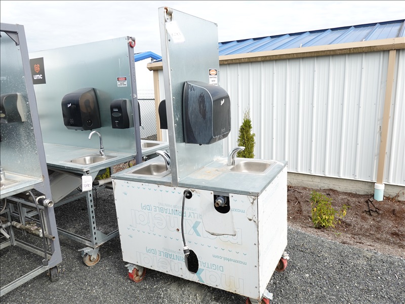 47" 2-SINK PORTABLE WASH STATION ON CASTERS W/HOT WATER TANK, 115V