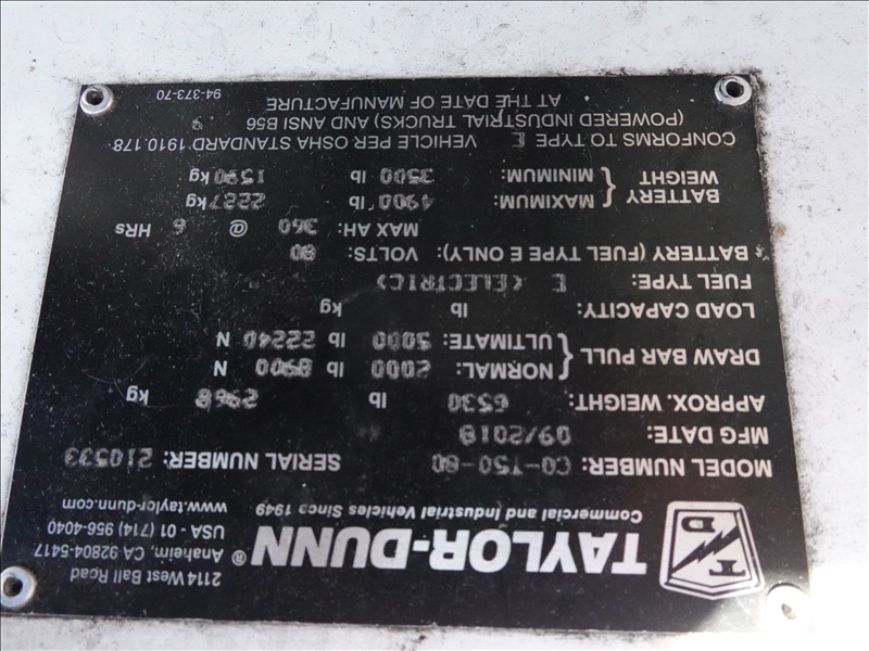 TIGER TOW TRACTOR, FRONT & REAR HITCH, 80V, CAB (**INOPERABLE**)