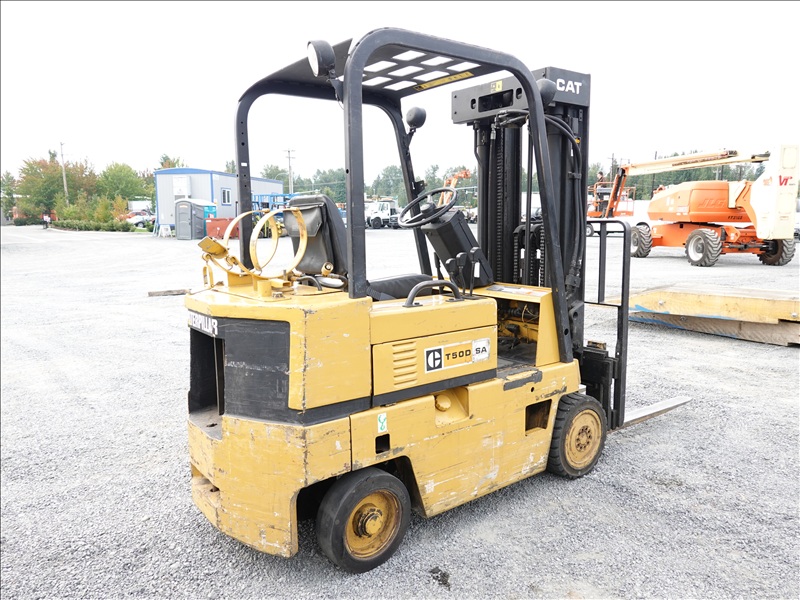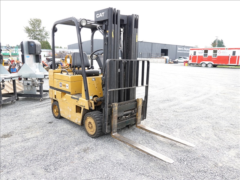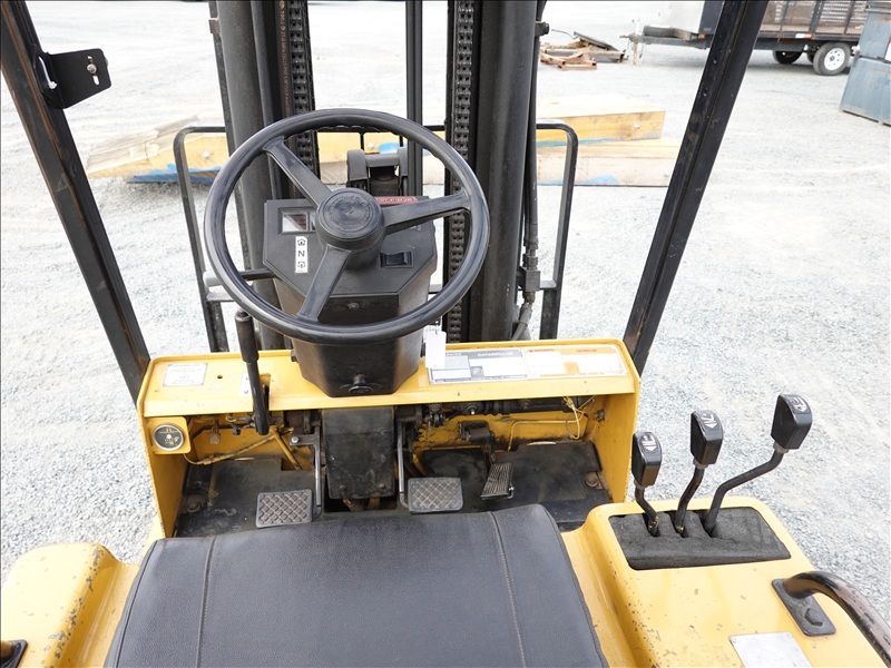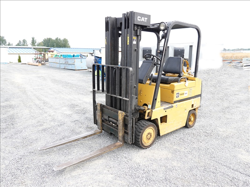 5,000 LB HRT FORKLIFT, 173" FORK HEIGHT, 3-STAGE MAST, CAT 1404 4 CYL PROPANE (**CONSIGNOR DISCLOSURE: RADIATOR NEEDS REPAIR, PROPANE GASKET FOR HOSE LEAK, NO PROPANE BOTTLE**)