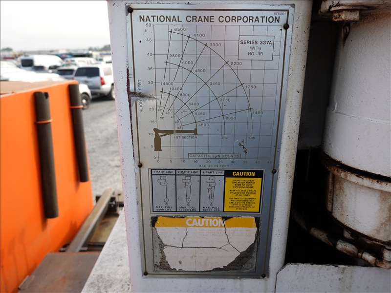 T/A, BOOM TRUCK, NATIONAL 337A 15,000 LB TELESCOPING CRANE, 47' 3-SECTION BOOM, OUTRIGGERS, 13' BOX, 6 CYL DIESEL, 10 SPD, A/B (**CONSIGNOR DISCLOSURE: BAD CLUTCH, RUNS, PLEASE PREVIEW**)