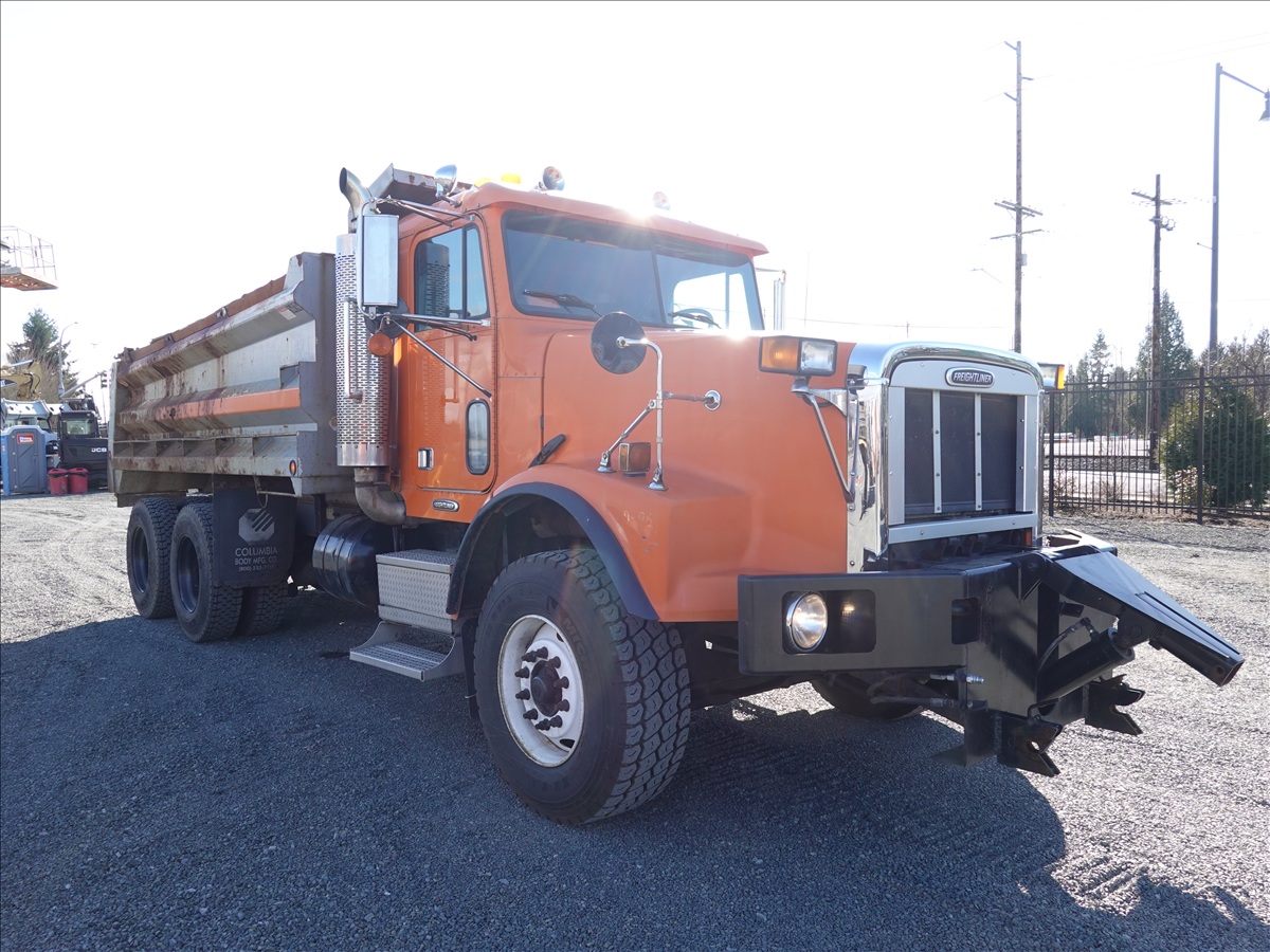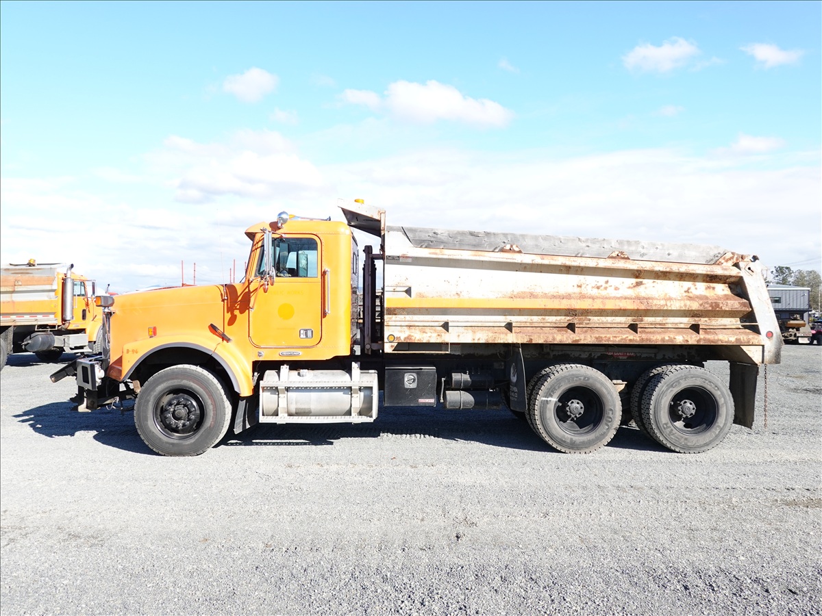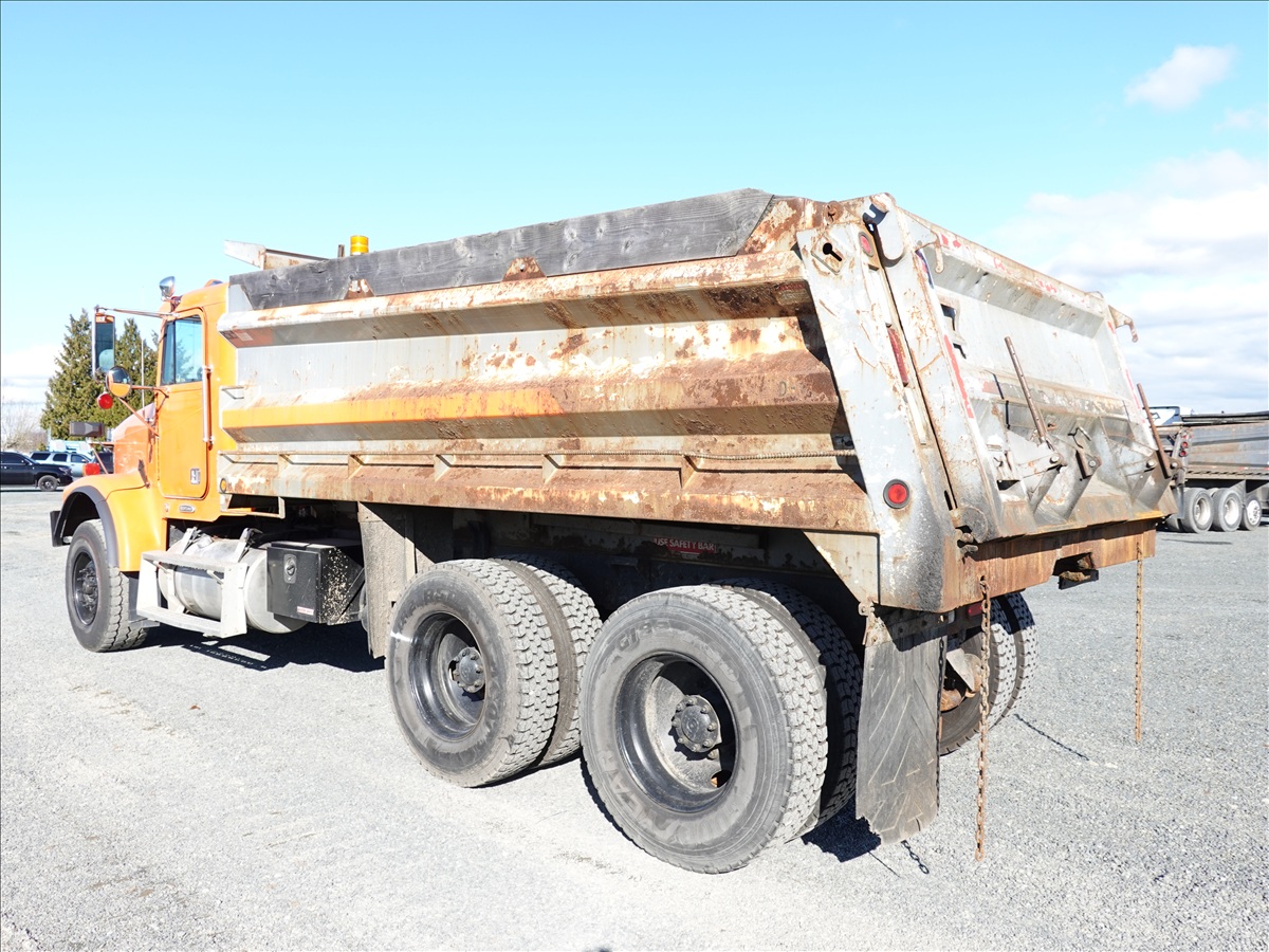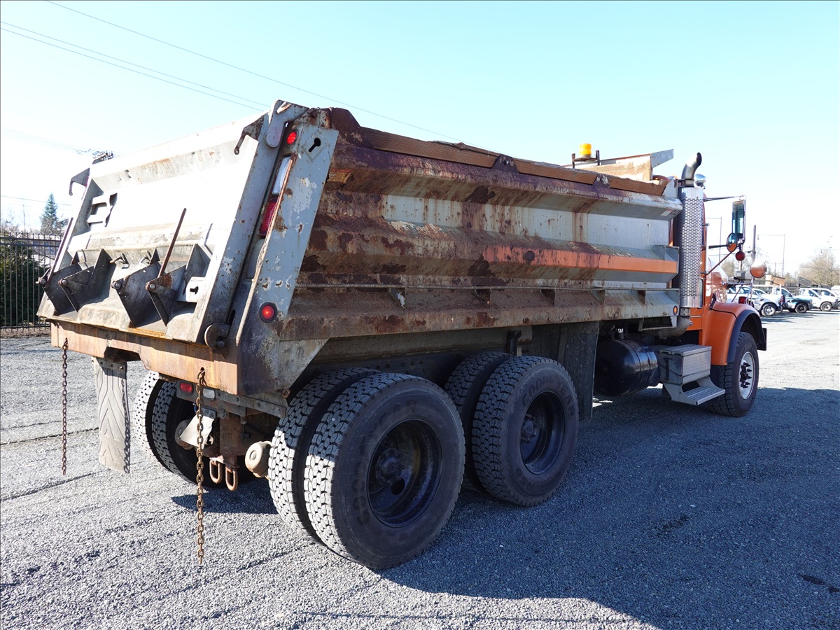 T/A, DUMP TRUCK, 15' STEEL BOX, 350 HP CUMMINS ISM, AUTO, CHALMERS SUSPENSION, 210" W/B, 18,000 LB FRONT, 46,000 LB REARS, PLUMBED FOR PUP, A/B