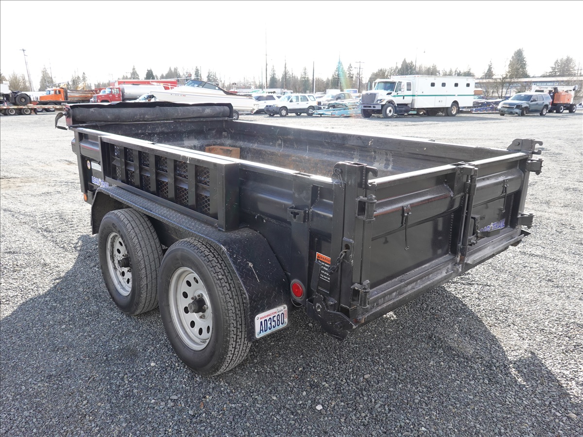 T/A, 10' X 5' 7,000 LB GVWR HYDRAULIC DUMP TRAILER, SPRING SUSPENSION, 2-WAY GATE DOOR, RAMPS, TARP SYSTEM, 12V PUMP, ELECTRIC BRAKES, 205/75R15
