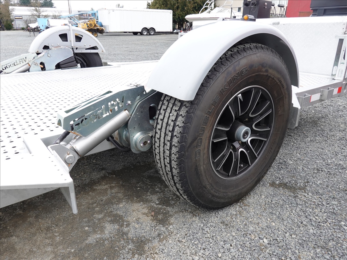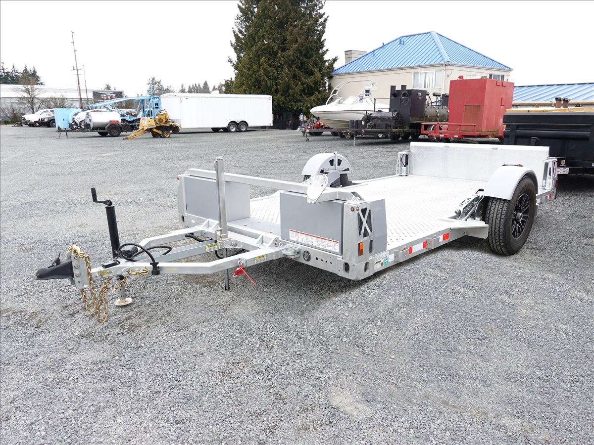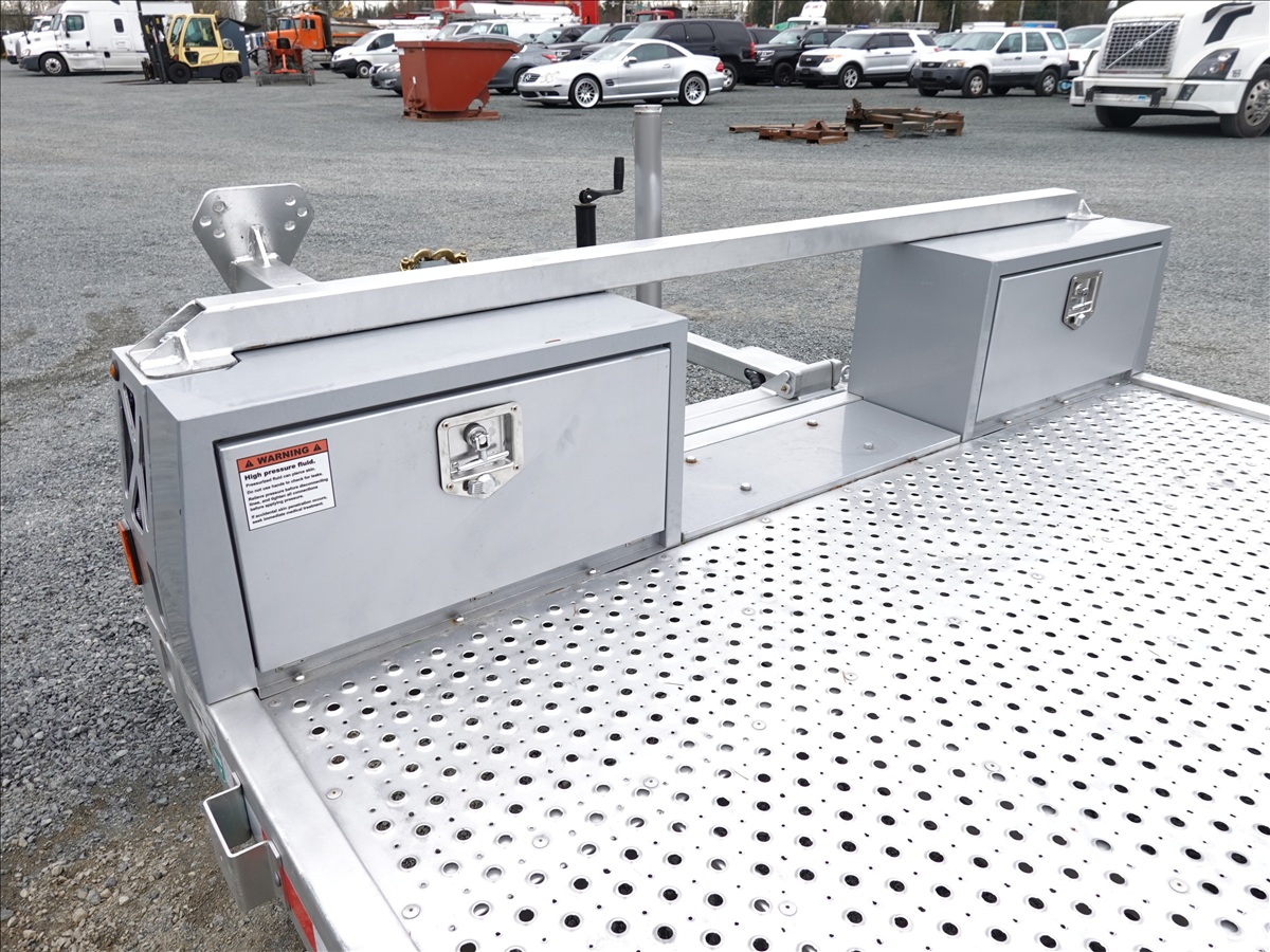 S/A, 13' X 7' 7,000 LB GVWR HYDRAULIC DROP DECK FLATBED TRAILER, REAR RAMP, 12V HYDRAULIC PUMP, ELECTRIC BRAKES, 235/80R16