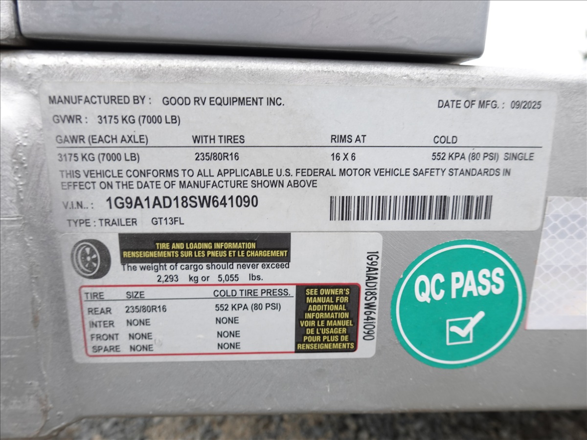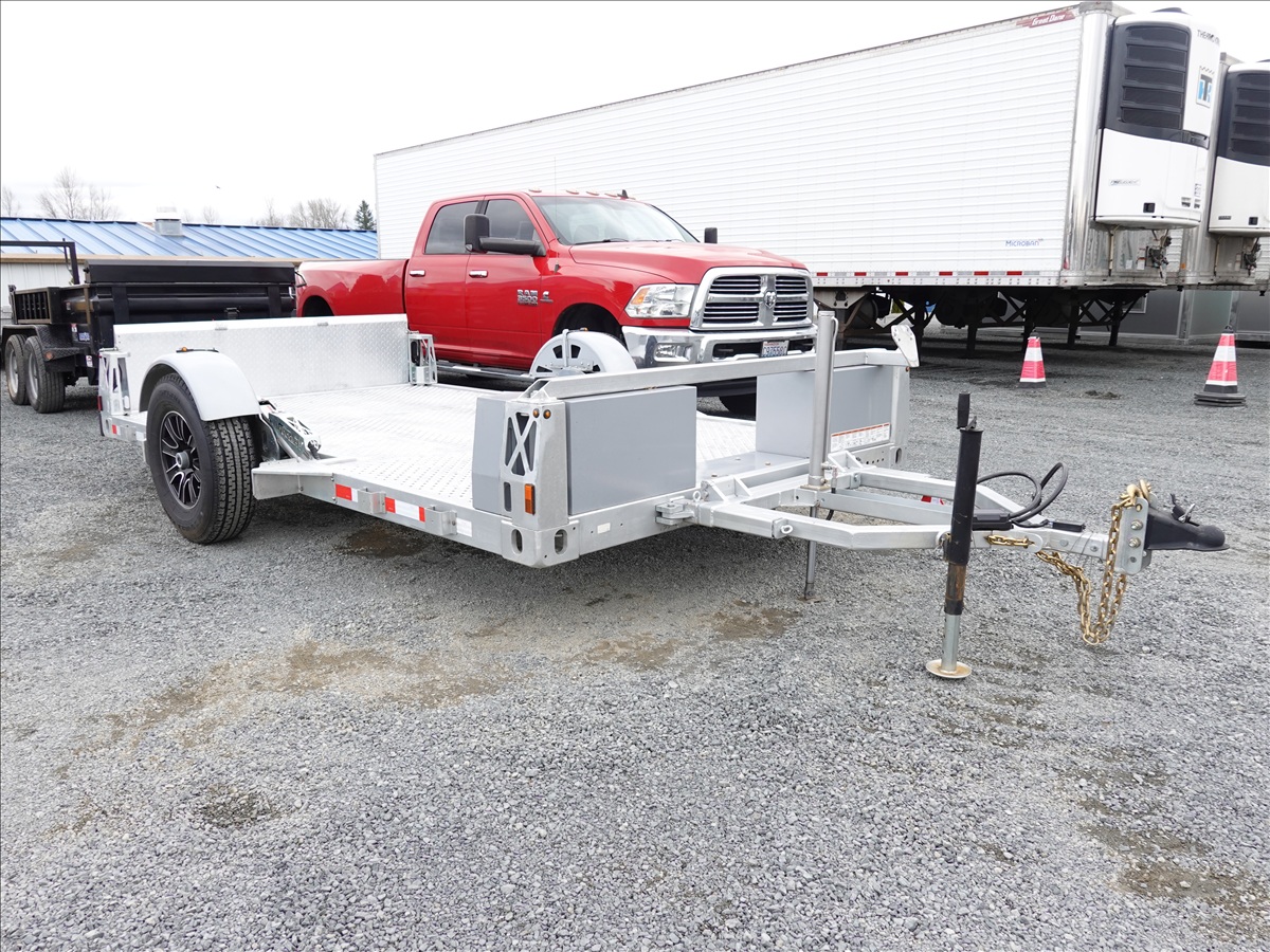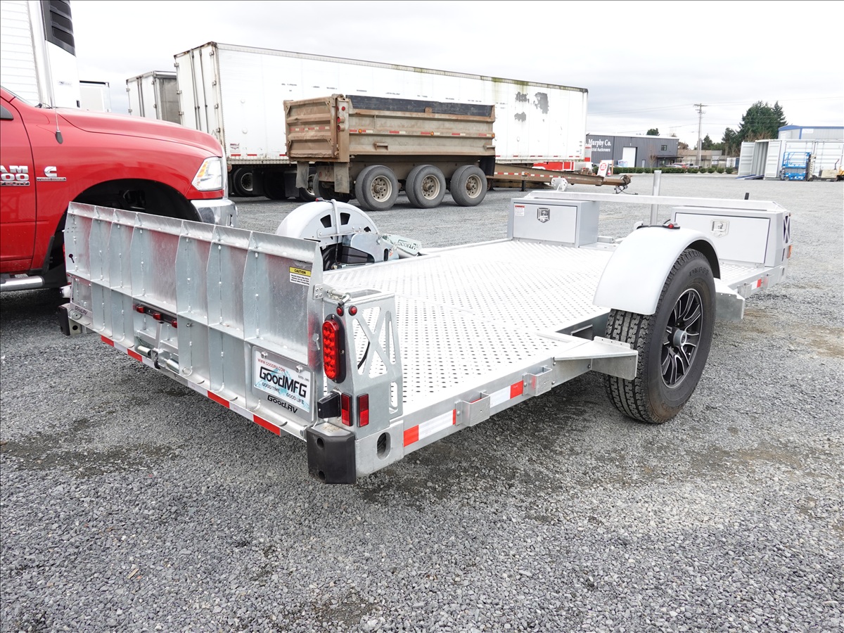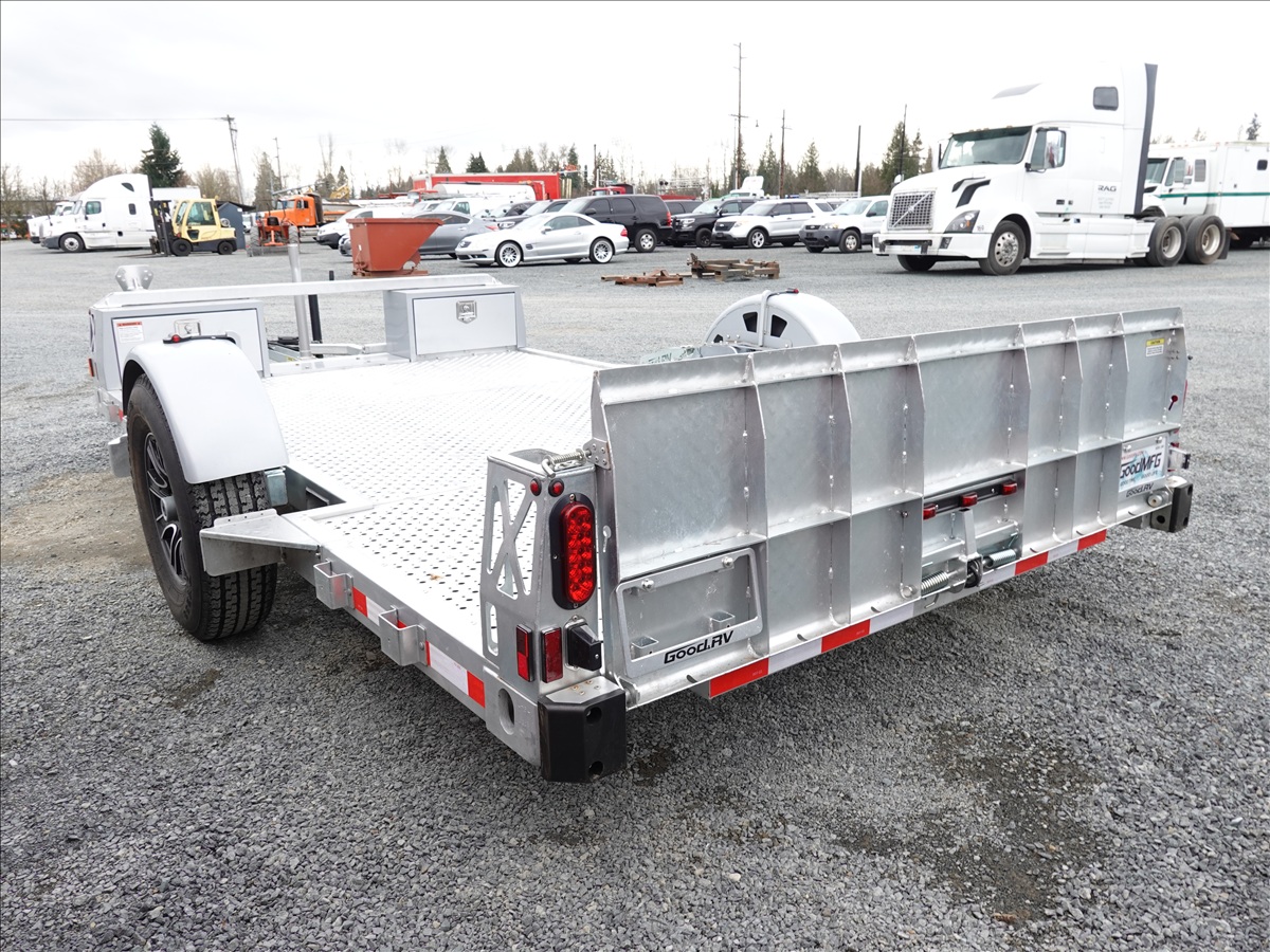 S/A, 13' X 7' 7,000 LB GVWR HYDRAULIC DROP DECK FLATBED TRAILER, REAR RAMP, 12V HYDRAULIC PUMP, ELECTRIC BRAKES, 235/80R16