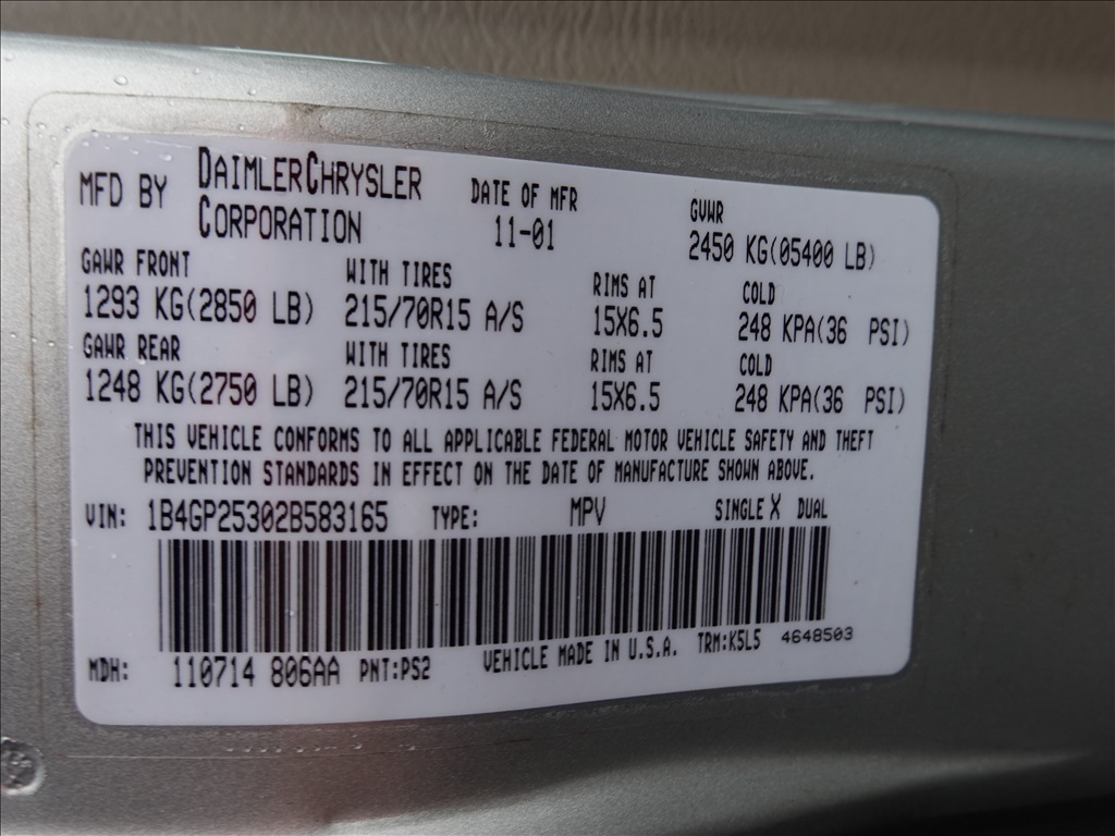 2002 DODGE CARAVAN PASSENGER VAN