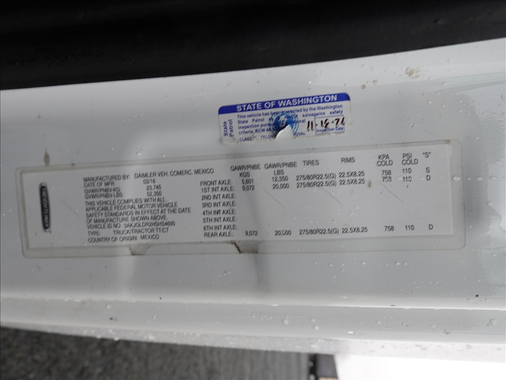 2017 FREIGHTLINER CASCADIA T/A SLEEPER TRACTOR