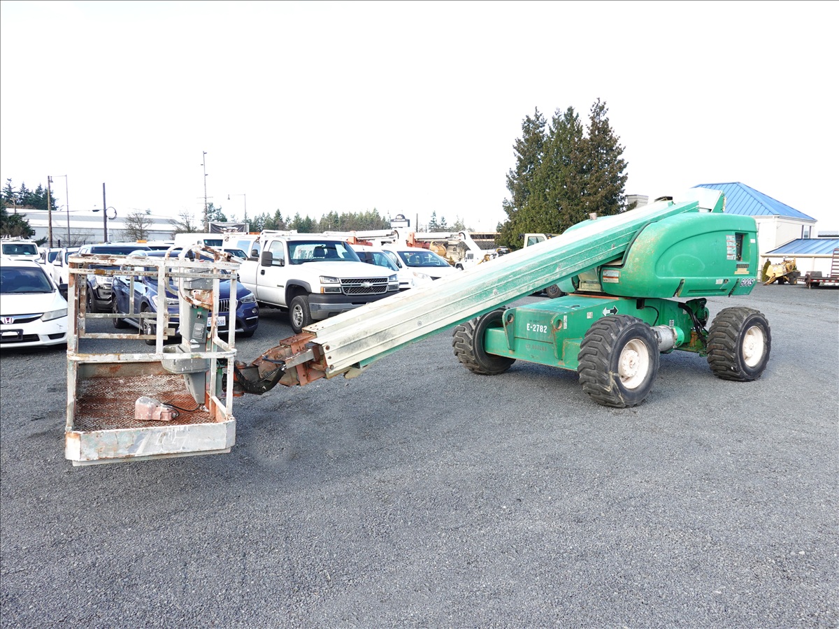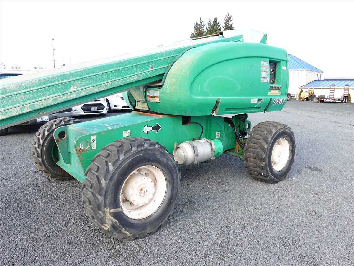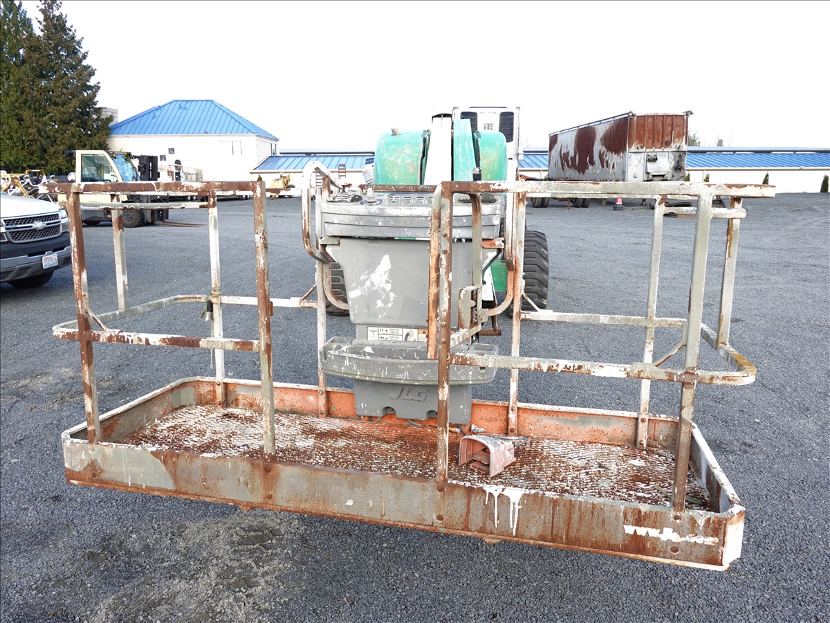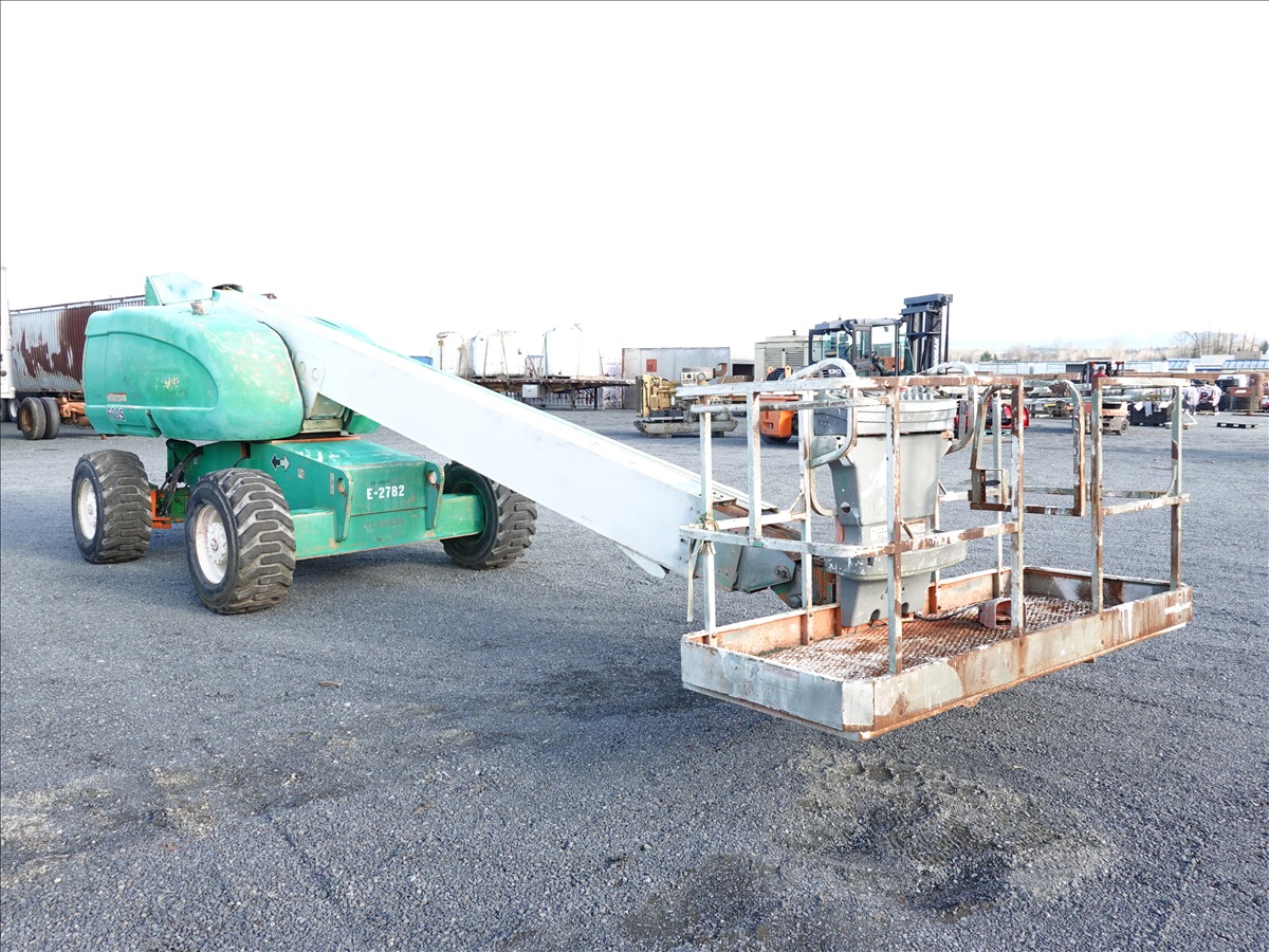 4WD, TELESCOPIC BOOM LIFT, 60' PLATFORM HEIGHT, 49' HORIZONTAL REACH, 500 LB CAPACITY, A/C, RECEPTICAL AT PLATFORM, 4 CYL LPG (DISCLOSURE: ONLY TRAVELS IN ONE DIRECTION, STUCK IN ONE DIRECTION WHEN APPLY FOOT PEDAL, WEAK HYDRAULICS, WILL NEED TO BE WINCHE