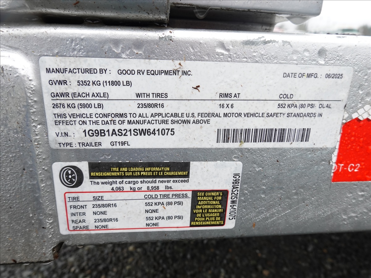 T/A, 19' X 7'2" 11,800 LB GVWR DROP DECK FLATBED TRAILER, 12V HYDRAULIC PUMP, ELECTRIC BRAKES, 235/80R16