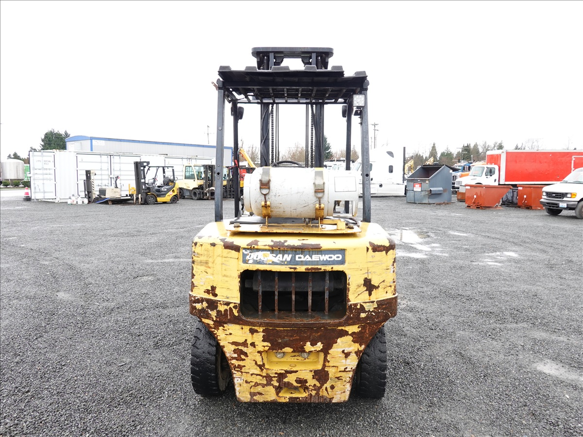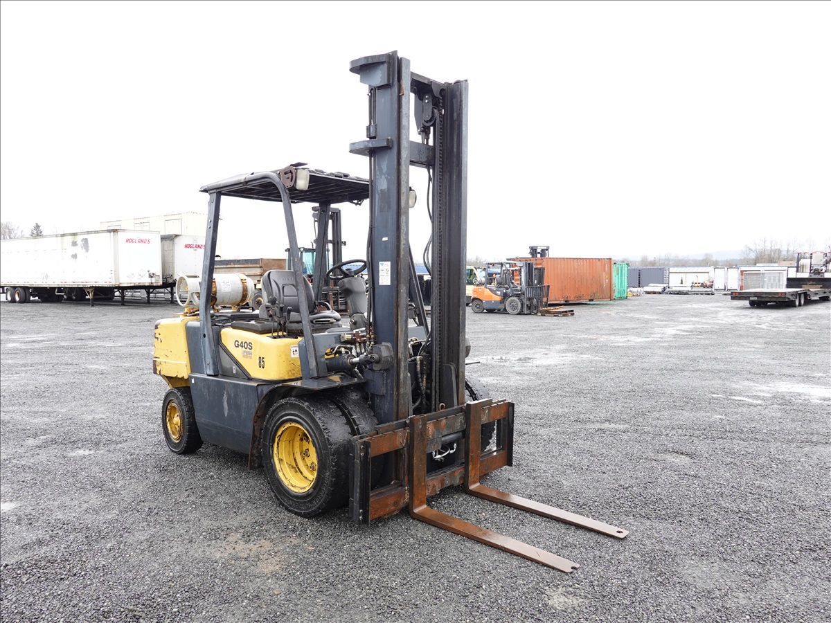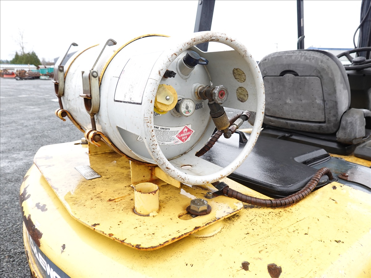 8,150 LB DUAL SOLID TIRE FORKLIFT, 167" FORK HEIGHT, 2-STAGE MAST, SIDE SHIFT, 48" FORKS, 6 CYL LPG, CANOPY