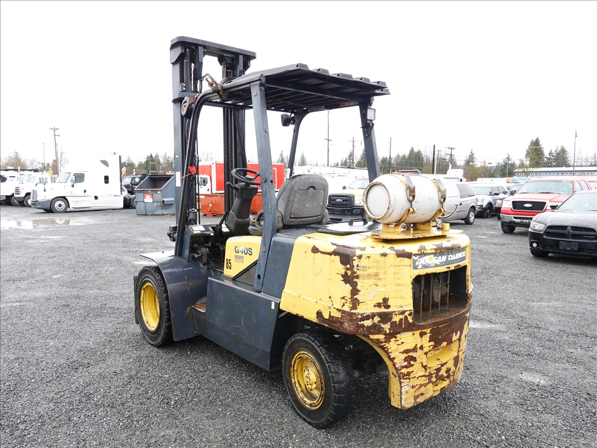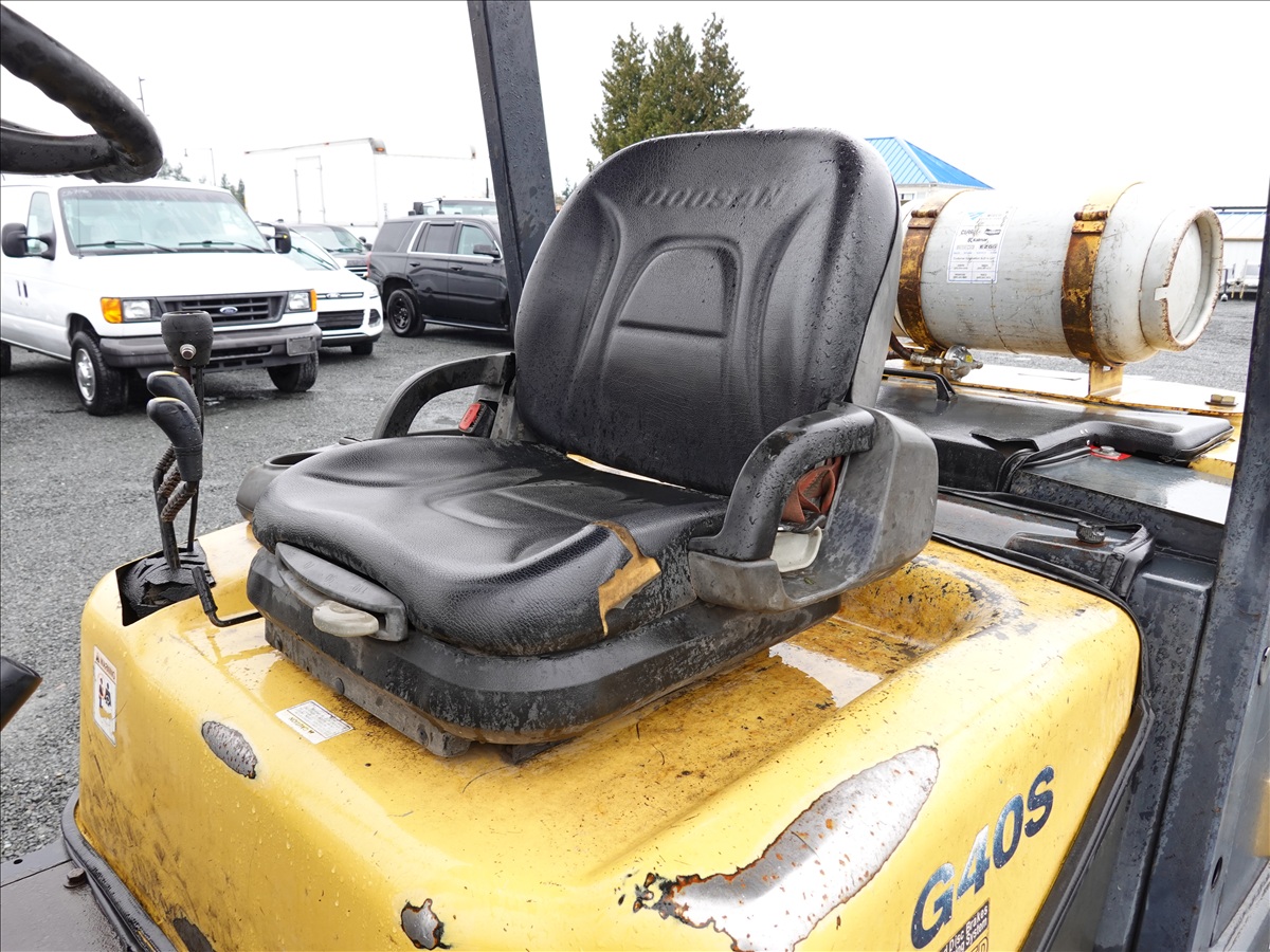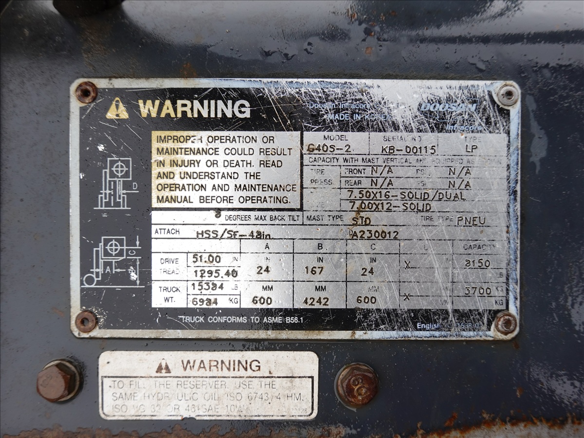 8,150 LB DUAL SOLID TIRE FORKLIFT, 167" FORK HEIGHT, 2-STAGE MAST, SIDE SHIFT, 48" FORKS, 6 CYL LPG, CANOPY