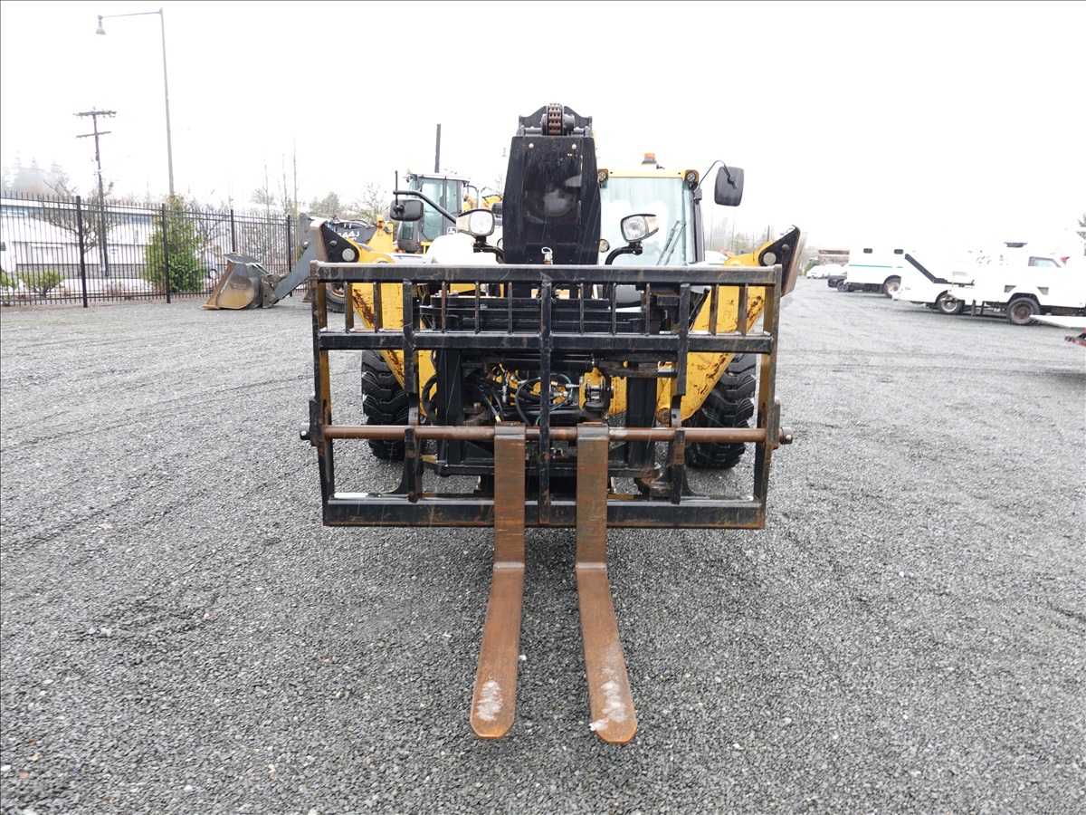 4X4X4 12,000 LB TELESCOPIC FORKLIFT, 54.6' LIFT HEIGHT, 4-SECTION BOOM, OUTRIGGERS, SWIVEL CARRIAGE, AUX HYD, 134 HP C4.4, A/C CAB, REAR CAMERA, SOLID AIR 14.00X24