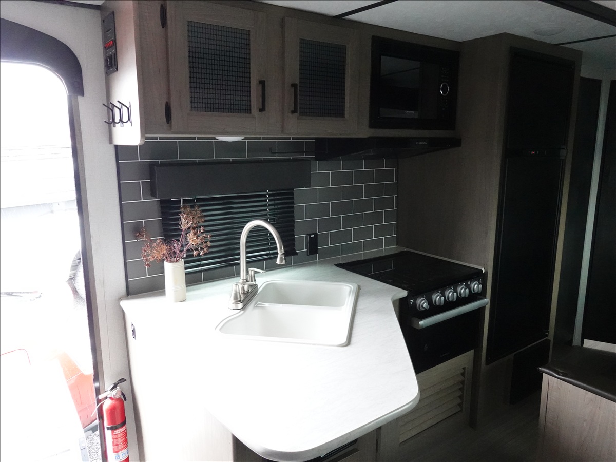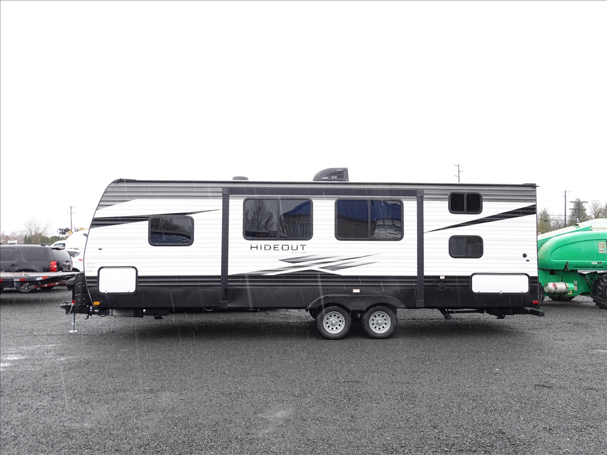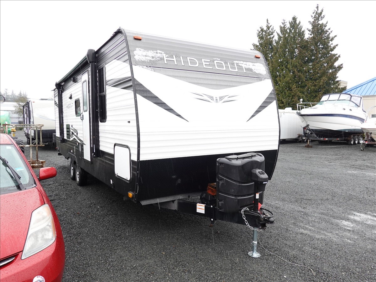 T/A, 26' 7,620 LB GVWR TRAVEL TRAILER, (1) 12' SLIDE, 13' AWNING, A/C UNIT, (2) PROPANE BOTTLES, ELECTRIC STABILIZER JACKS, WEIGHT DISTRIBUTION HITCH, 205/70R14 (NO KEYS)