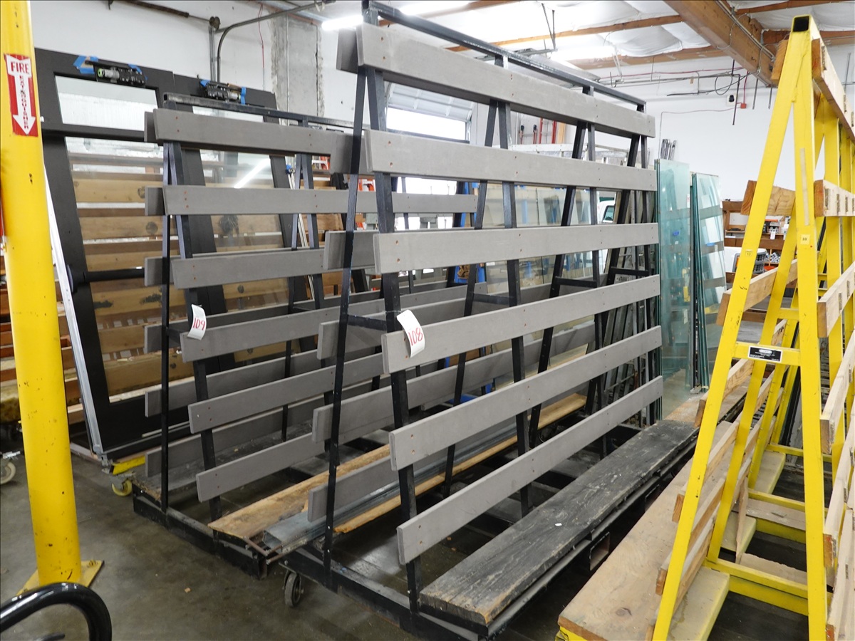 8'L X 42"W METAL DOUBLE SIDED MATERIAL RACK ON CASTERS W/FORK POCKETS
