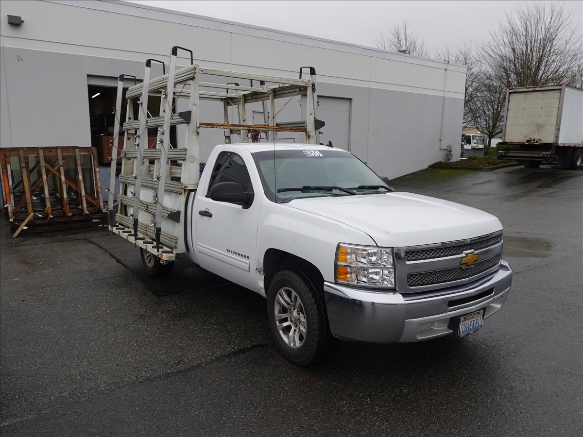 SINGLE CAB LONG BED GLASS TRUCK, V8, GAS, AUTO, P/WDW, P/LOCK, P/WDW, CRUISE, TILT, A/C, ODOMETER READS: 176,575 (MISFIRE AT IDLE, AIRBAG LIGHT IS ON, BODY DAMAGE)