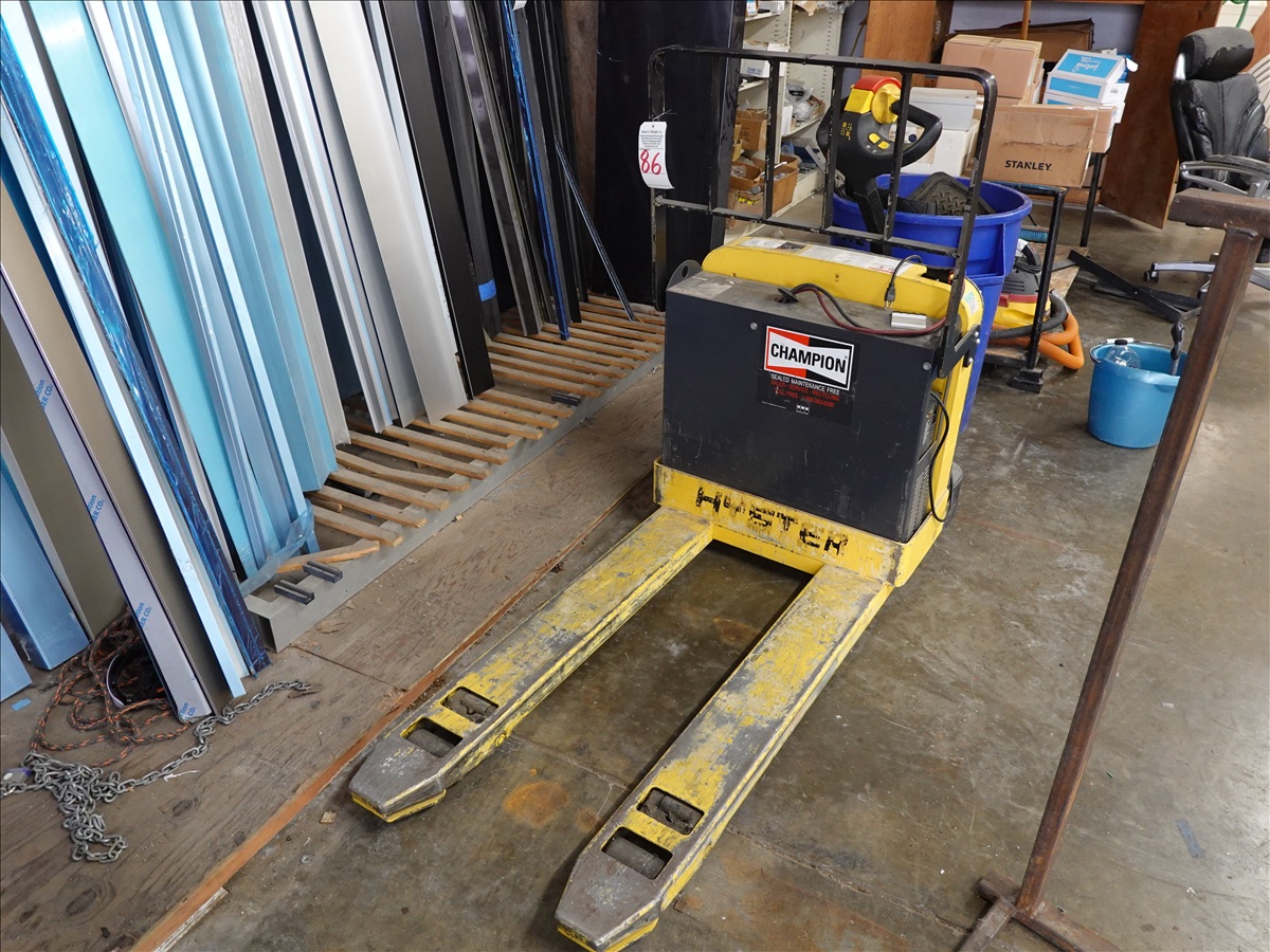 4,000 LB CAP ELECTRIC/HYDRAULIC PALLET JACK, HOUR METER READS: 932 (NEEDS REPAIR)