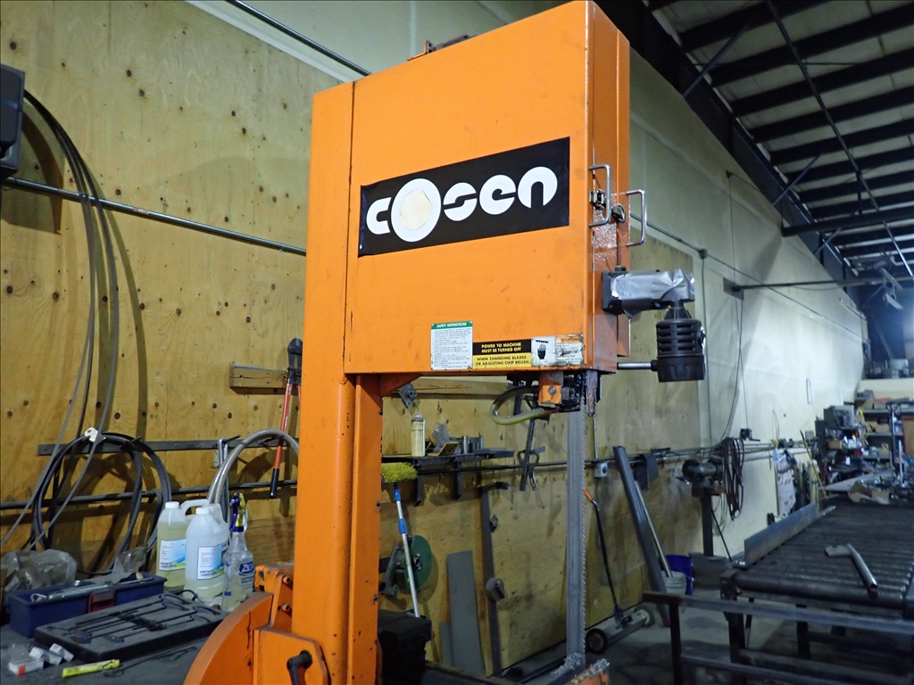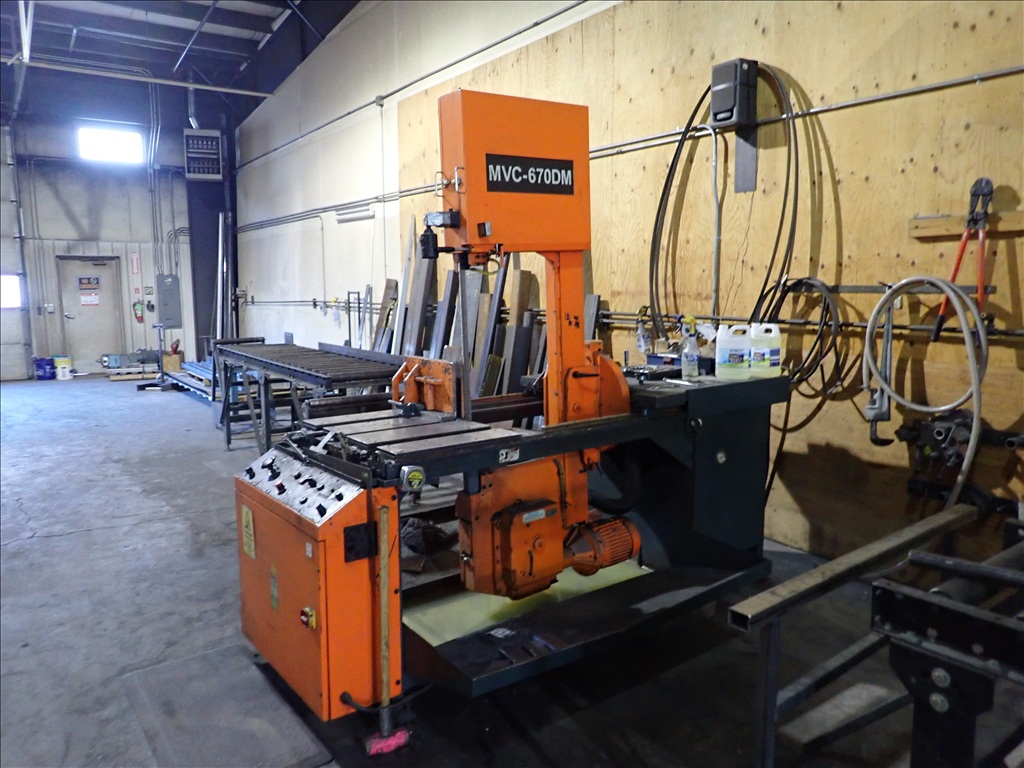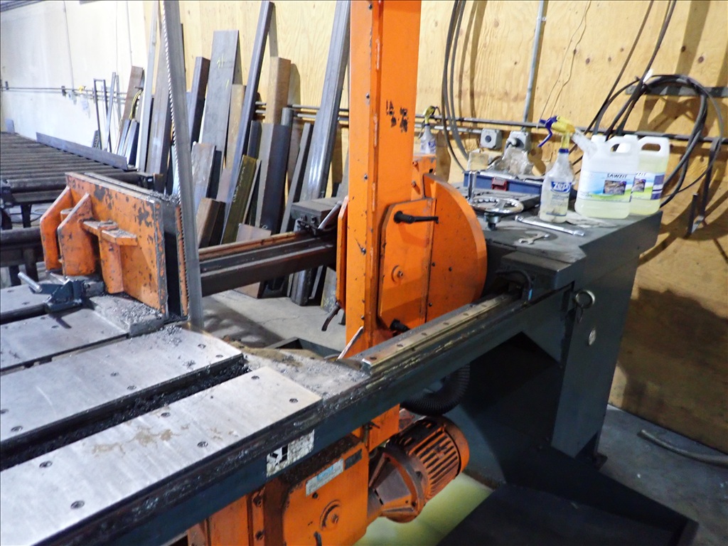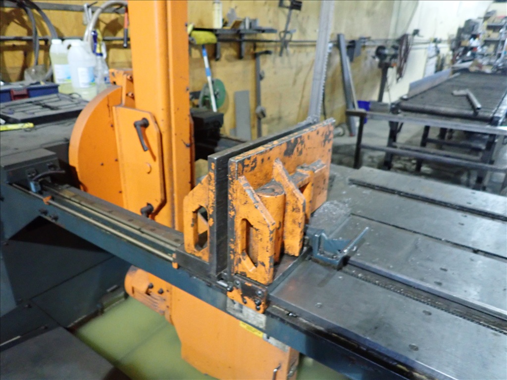 VERTICAL MITERING BANDSAW, CLAMP, COOLANT, IN/OUTFEED, CONTROLS