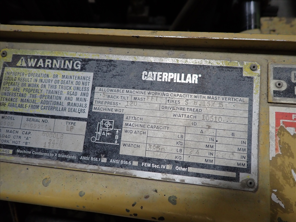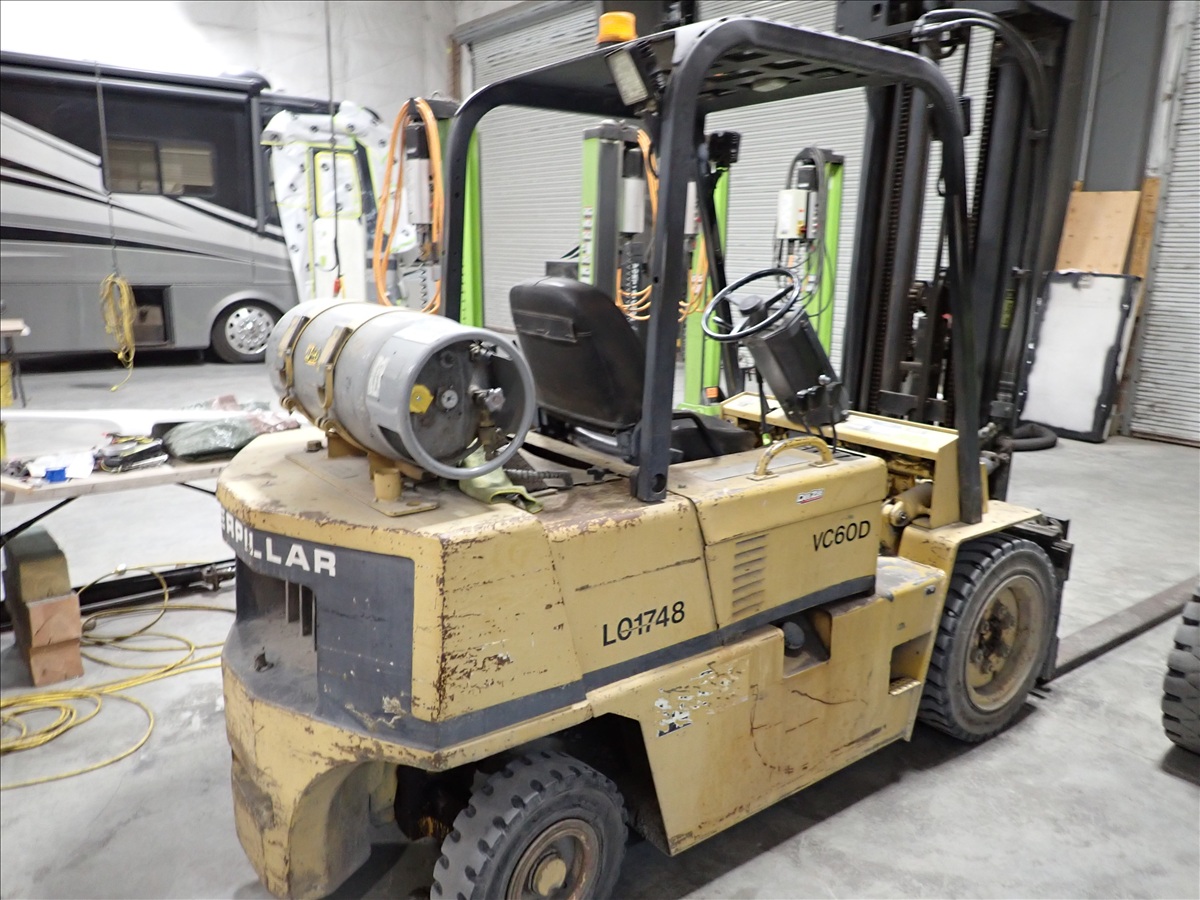 6,000 LB CAP. CUSHION TIRED FORKLIFT, 175" 3-STAGE MAST, SIDE SHIFT, PROPANE