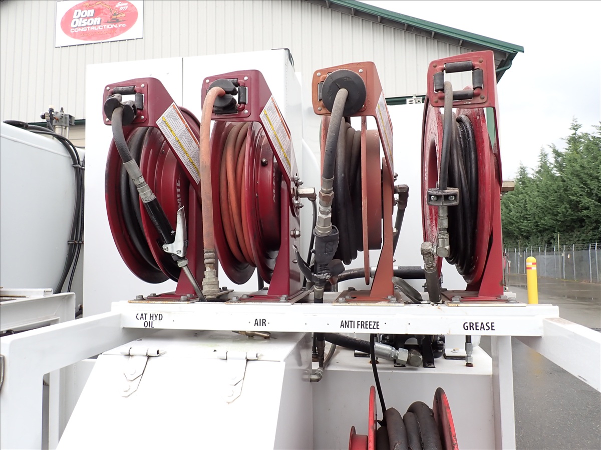 S/A FUEL LUBE TRUCK, CUMMINS ISB250, 6 SPD, INGERSOLL RAND AIR COMPRESSOR W/HONDA, 750 GALLON OFF ROAD DIESEL TANK, AUX ON ROAD FUEL TANK, (5) PRODUCT TANKS, GREASE BARREL, WASTE OIL RECOVERY SYSTEM, HOSE REELS, DISPENSERS, METERS, AIR BRAKE, 33,000 GVW
