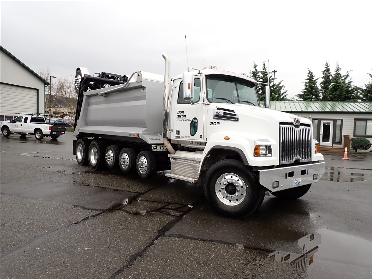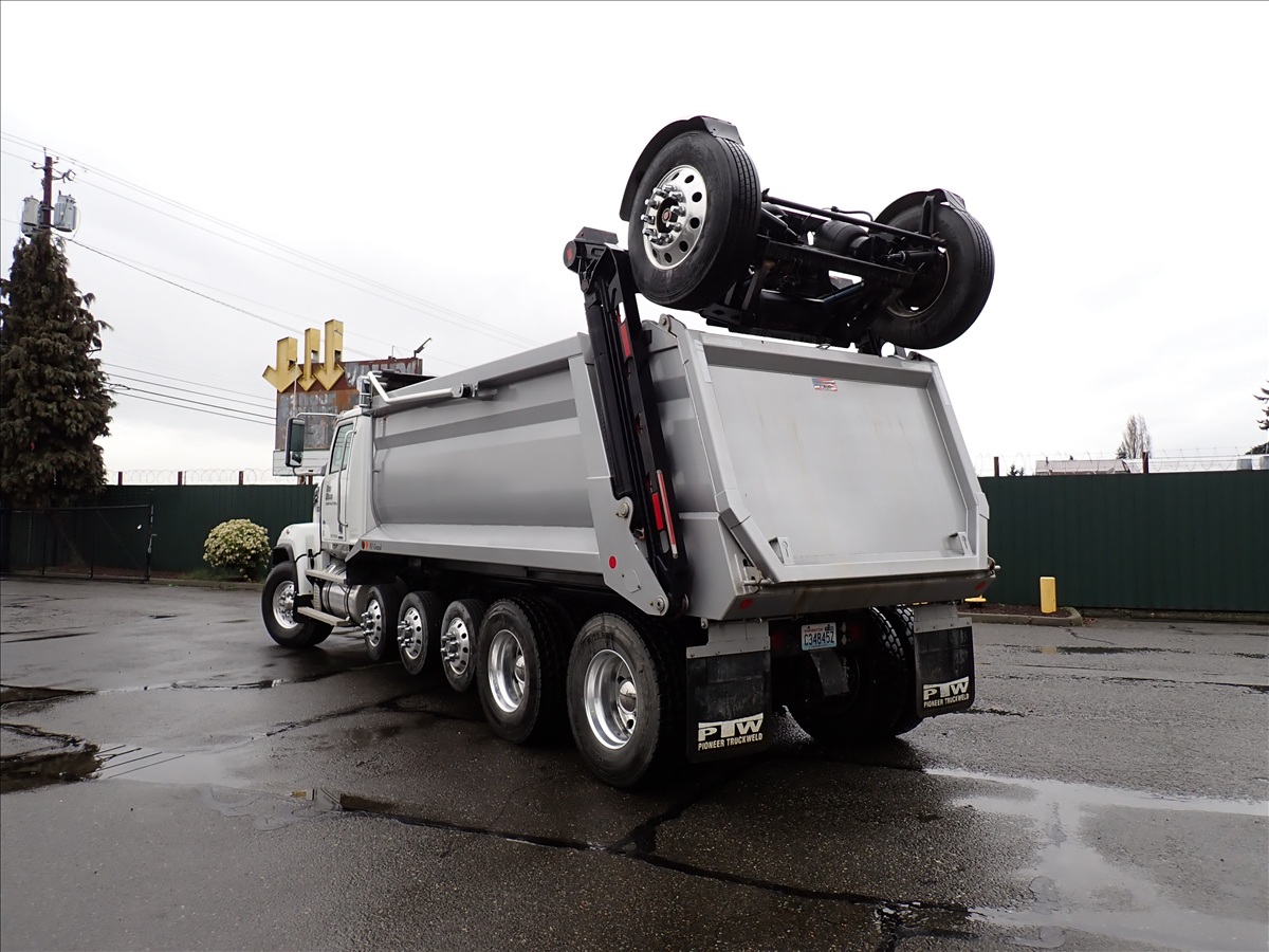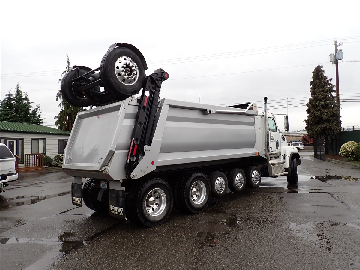 SUPER SOLO DUMP TRUCK, DETROIT DD13-500+HP, ALLISON AUTO, 18,000 FRONT, 46,000 REARS, LOCKERS, HAULMAX SUSPENSION, (3) DROP AXLES, STRONG ARM BOOSTER, 18' 6" STEEL BOX W/TARP SYSTEM