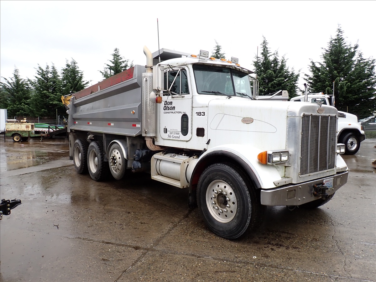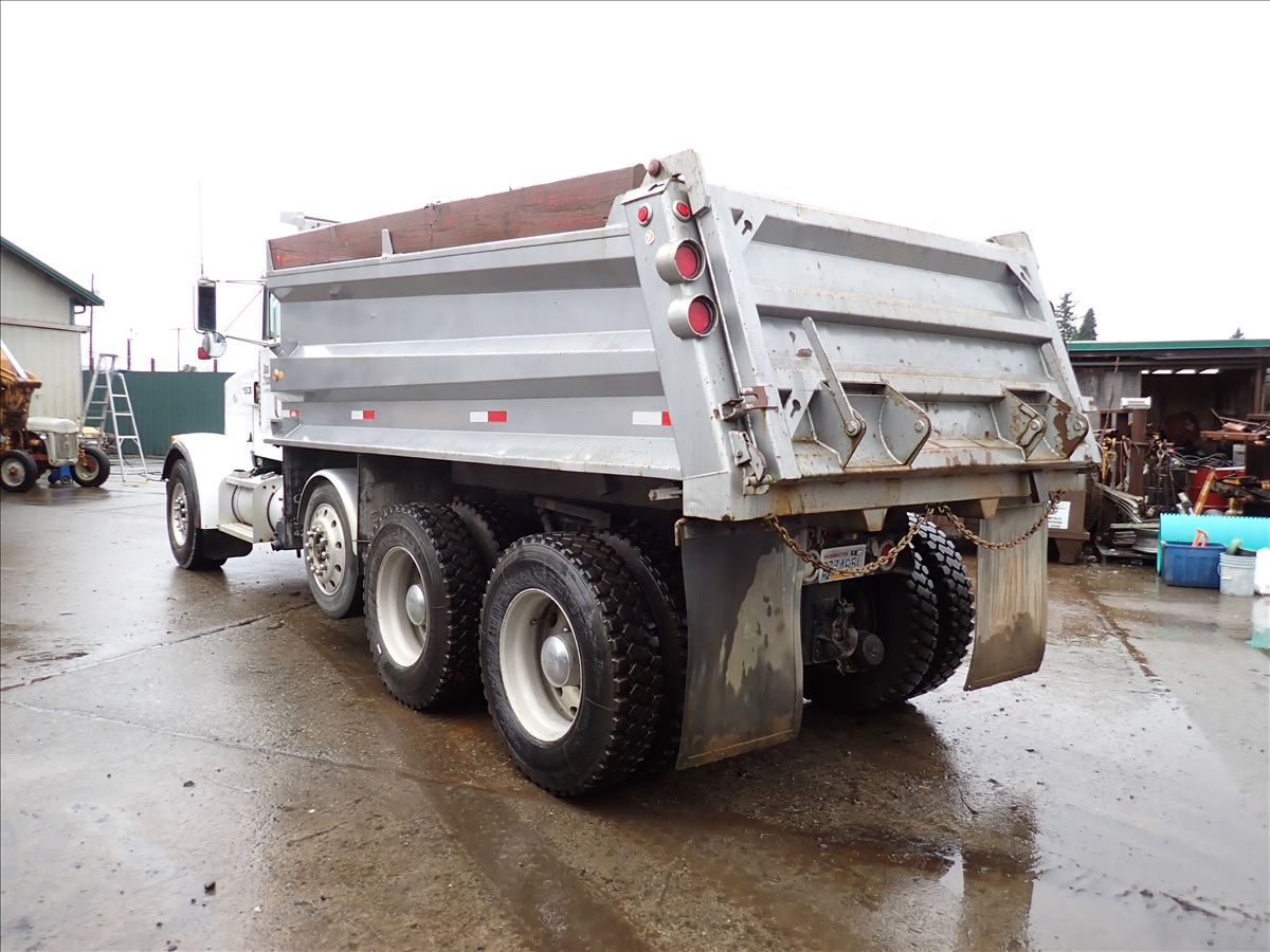 TRI/A DUMP TRUCK, CAT 3406, 18 SPD, 40,000 REARS, CHALMERS SUSPENSION, 16' STEEL BOX, DROP AXLE, PLUMBED FOR PUP