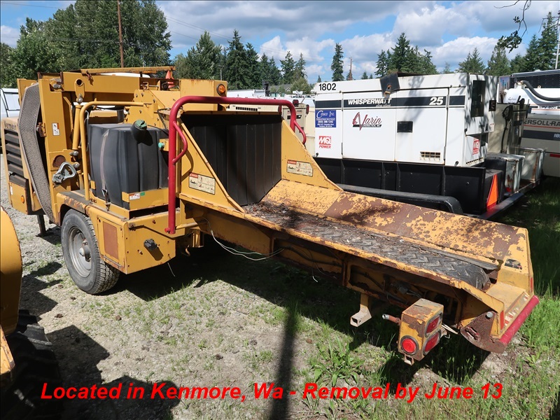 TRAILER MOUNTED HORIZONTALGRINDER, 42" TUB, 18" X 8"FOLDING DISCHARGE CONVEYOR,SMART FEED SYSTEM, 4 CYLDIESELHOUR METER READS: 309