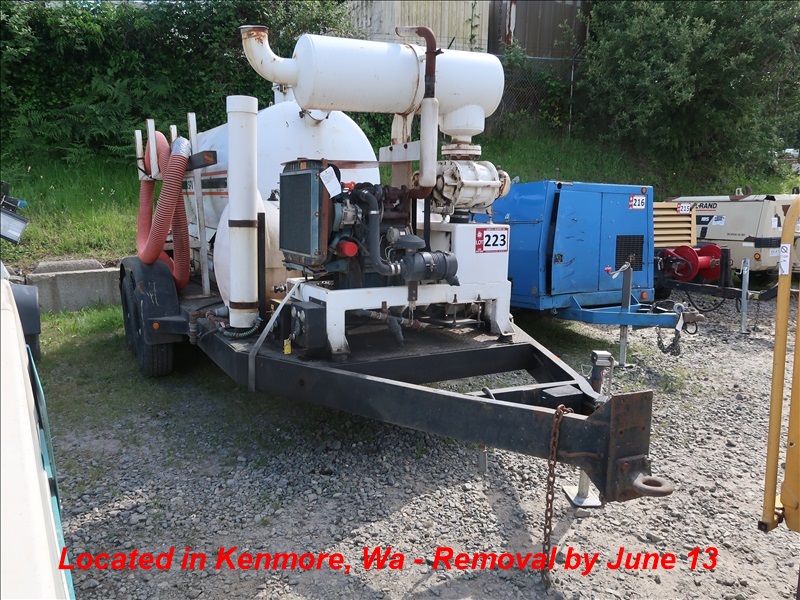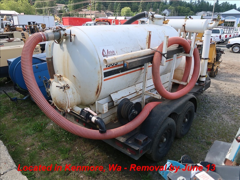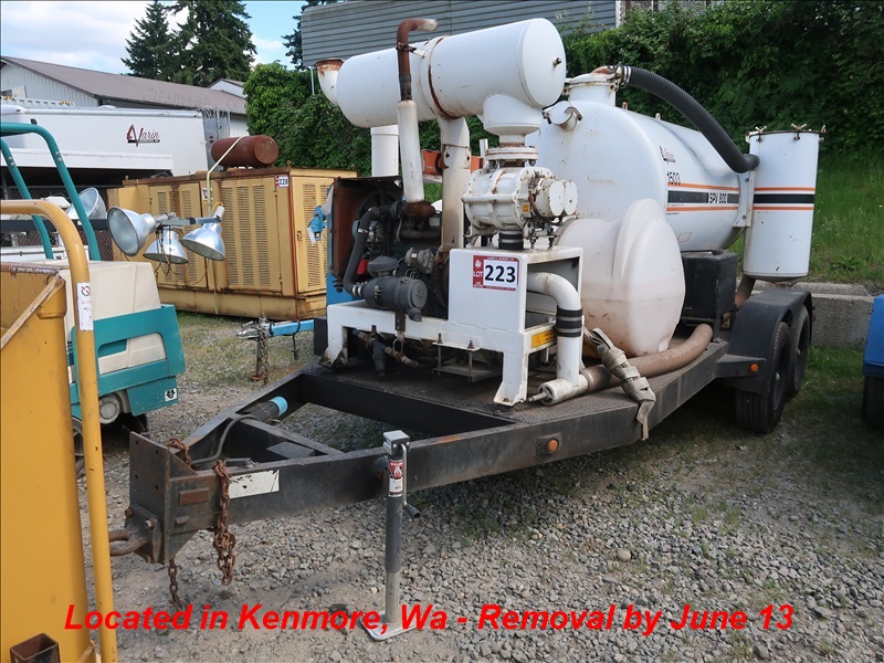 14' T/A EQUIPMENT TRAILERW/VACMASTERS SPV 800 DT4/WVACUUM W/200 GAL WASH DOWNTANK, KUBOTA 4 CYL DIESELHOUR METER READS: 1,012