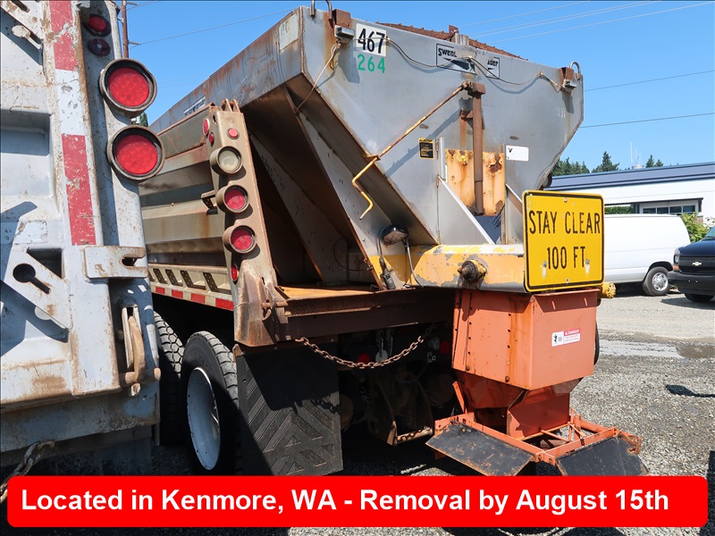 TRI/A DUMP TRUCK, 16'5" STEELBOX, SWENSON SANDER SPREADER,TAILGATE, 450 HP CAT C-15, 18SPD, HAULMAXX SUSPENSION,213" W/B, 46,000 LB REARS, DBLLOCKERS, DROP AXLE, PLUMBEDFOR PUP