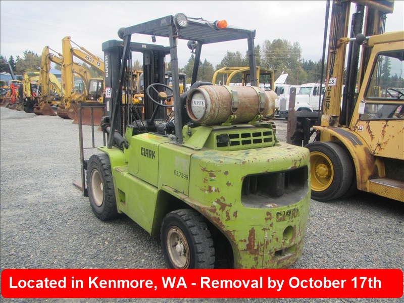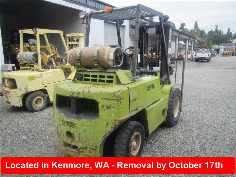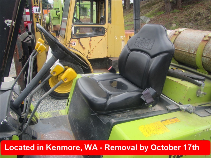8,000 LB SOLID CUSHION TIREFORKLIFT, 170" FORK HEIGHT,3-STAGE MAST, SIDE SHIFT,4 CYL PROPANEHOUR METER READS: 4,677
