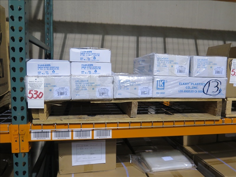 LOT, (13) BOXES OF POLY GUSSET BAGS ON THIS PALLET