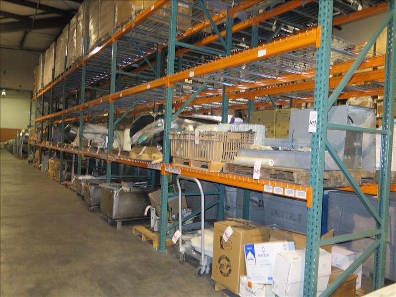 42" X 14'H 8-SECTION 8' HEAVY DUTY PALLET RACKING ($250 REFUNDABLE STUD GRINDING DEPOSIT REQUIRED, CAN NOT BE REMOVED UNTIL MONDAY, 12/17)