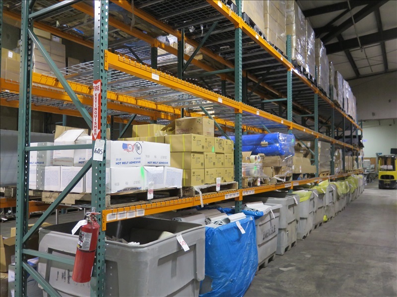 42" X 14'H 8-SECTION 8' HEAVY DUTY PALLET RACKING ($250 REFUNDABLE STUD GRINDING DEPOSIT REQUIRED, CAN NOT BE REMOVED UNTIL MONDAY, 12/17)