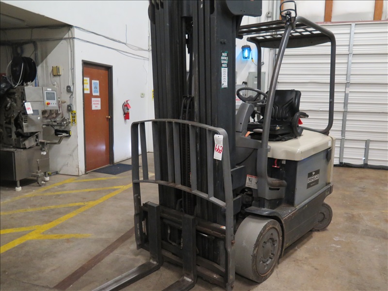 6,500 LB HRT ELECTRIC FORKLIFT, 258" 4-STAGE MAST, SIDE SHIFT, W/ENFORCER SOR BATTERY CHARGER (AT OSCAR LOCATION, MUST STAY UNTIL THURSDAY, 1/31) HOUR METER READS: 7,181