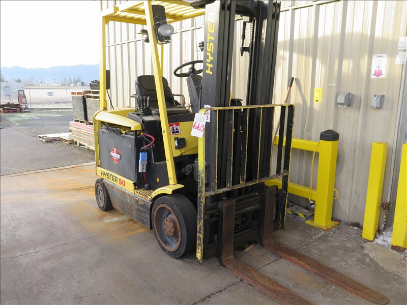 5,000 LB ELECTRIC HRT FORKLIFT, 189" 3-STAGE MAST, SIDESHIFT **NON-RUNNING** (AT OSCAR LOCATION)