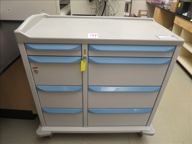 42" 8-DRAWER MEDICAL CRASH CART ON CASTERS W/(2) LOCKS & KEYS (BLUE)
