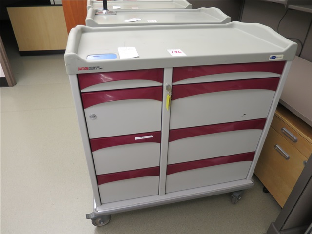 42" 8-DRAWER MEDICAL CRASH CART ON CASTERS W/(2) LOCKS & KEYS (RED)