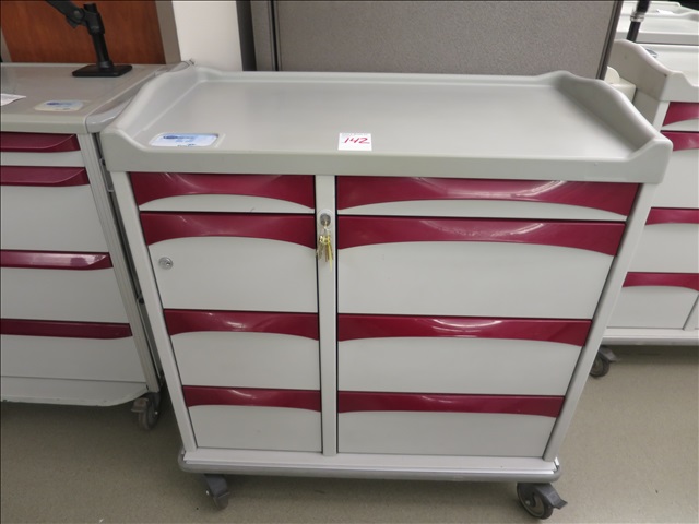 42" 8-DRAWER MEDICAL CRASH CART ON CASTERS W/(2) LOCKS & KEYS (RED)