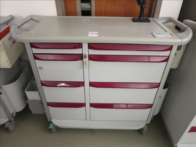 42" 8-DRAWER MEDICAL CRASH CART ON CASTERS W/(2) LOCKS & KEYS (RED)