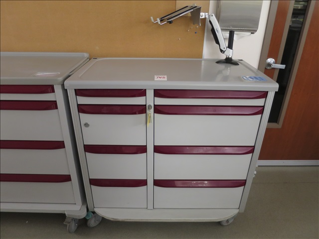 42" 8-DRAWER MEDICAL CRASH CART ON CASTERS W/(2) LOCKS & KEYS (RED)