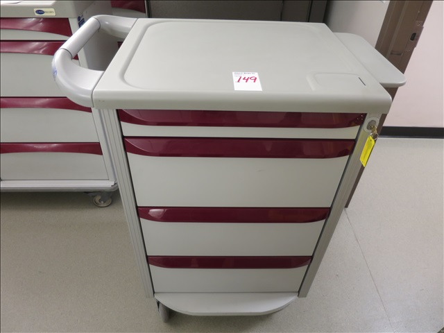 26" 4-DRAWER MEDICAL CRASH CART ON CASTERS W/1 LOCK & KEY (RED)