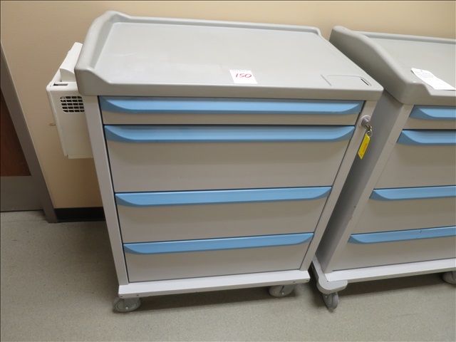 33" 4-DRAWER MEDICAL CRASH CART ON CASTERS W/1 LOCK & KEY (BLUE)
