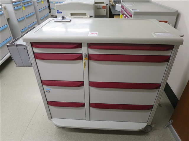 42" 8-DRAWER MEDICAL CRASH CART ON CASTERS W/(2) LOCKS & KEYS (RED)