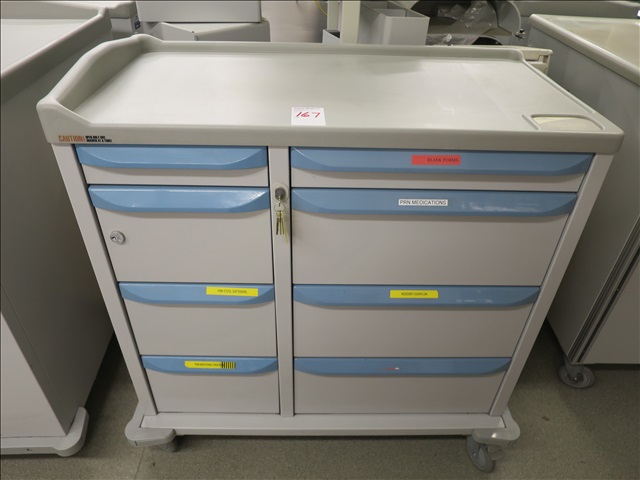 42" 8-DRAWER MEDICAL CRASH CART ON CASTERS W/(2) LOCKS & KEYS (BLUE)