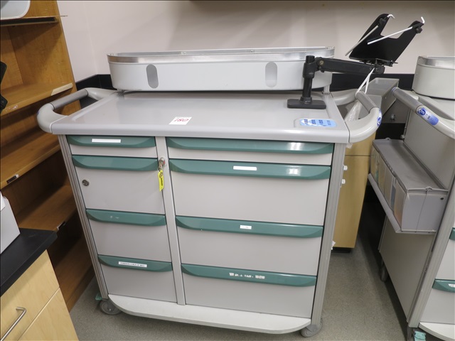 42" 8-DRAWER MEDICAL CRASH CART ON CASTERS W/(2) LOCKS & (2) KEYS (GREEN)
