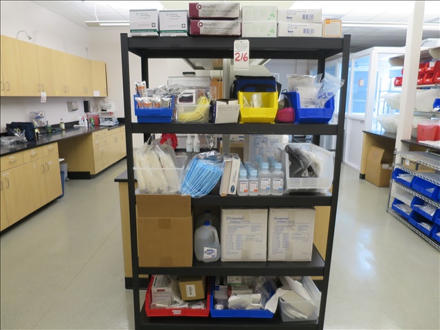 LOT, MISC MEDICAL & LAB SUPPLIES W/4' METAL SHELVING UNIT (LAB 5)